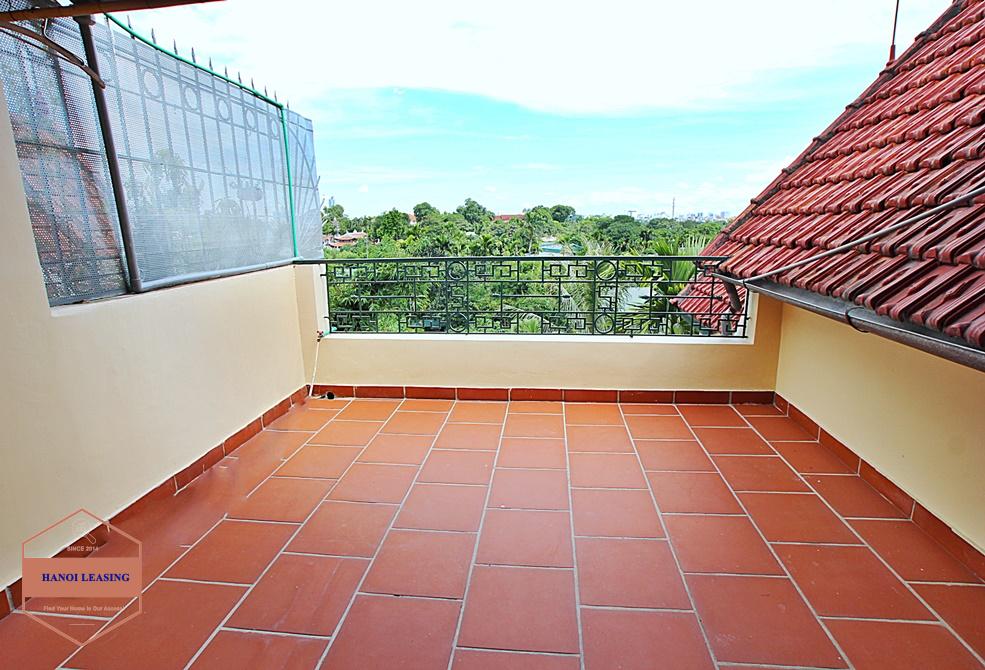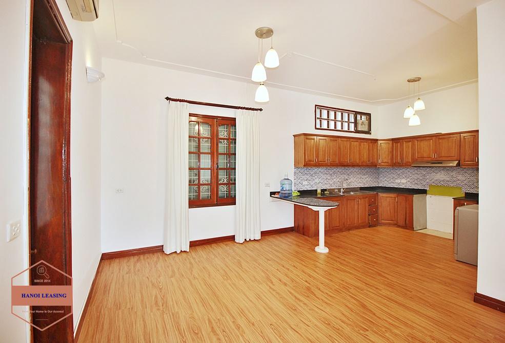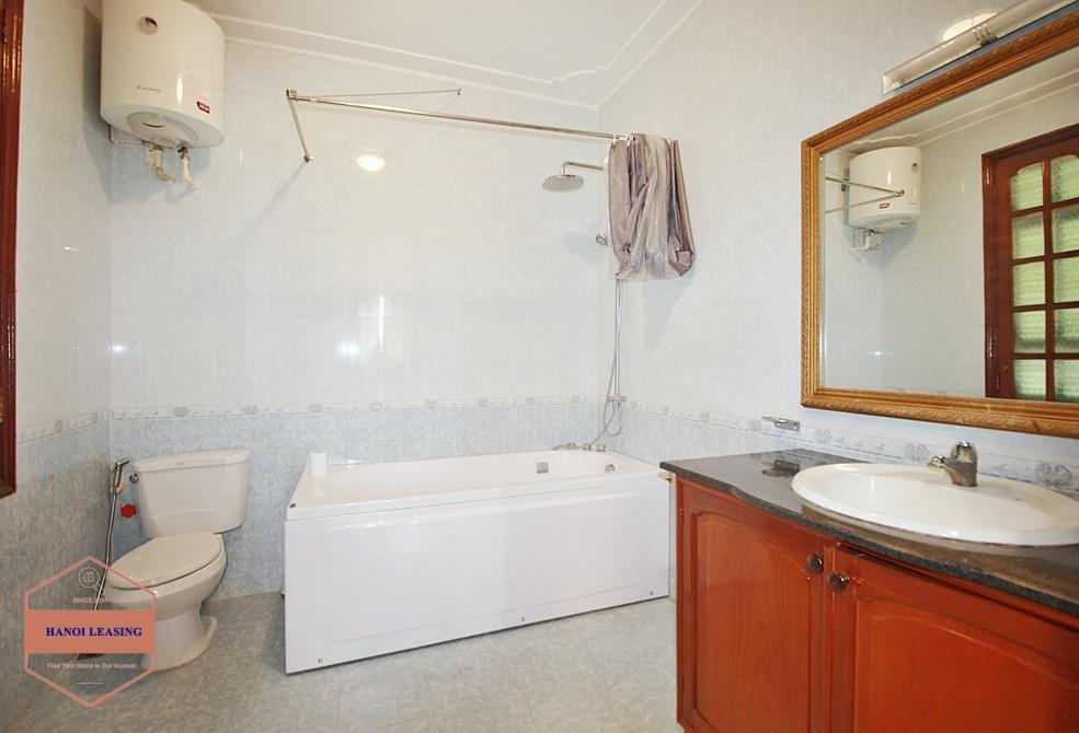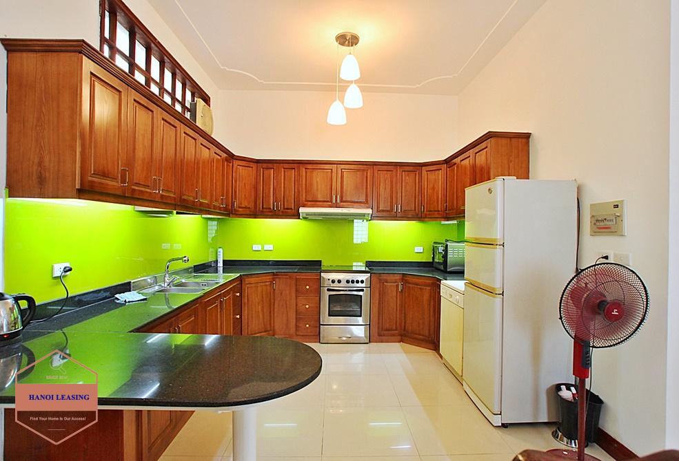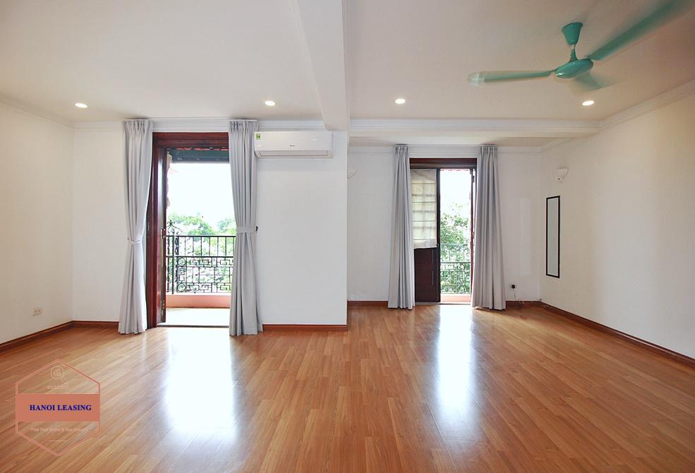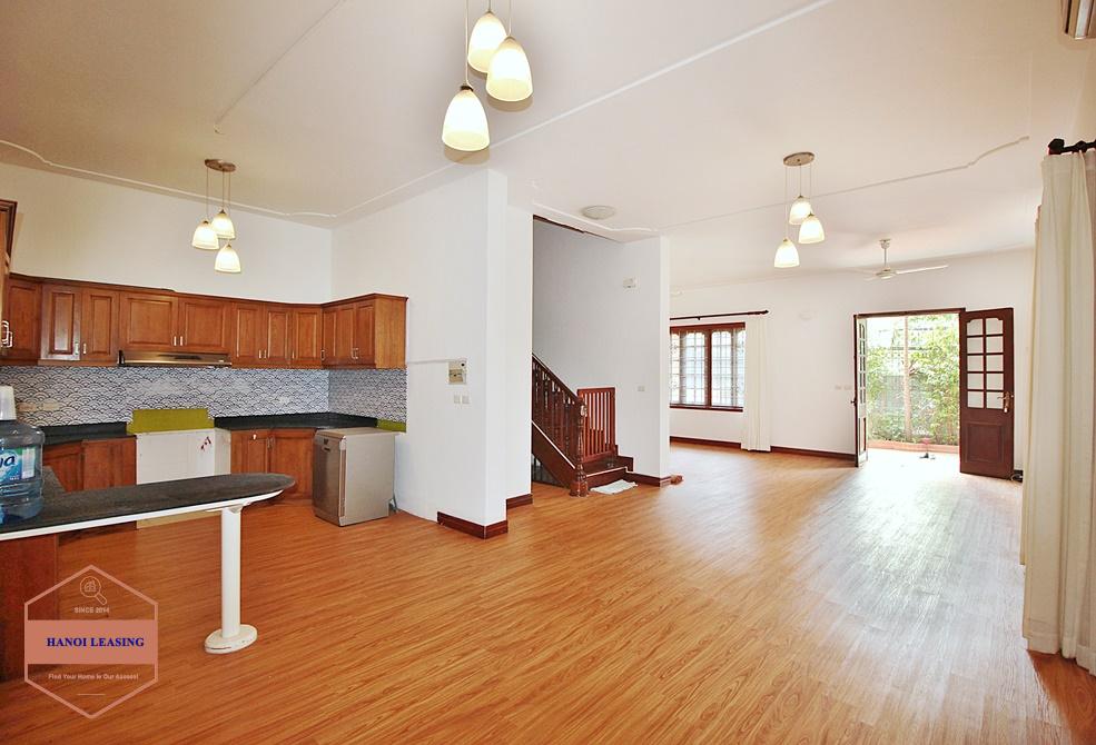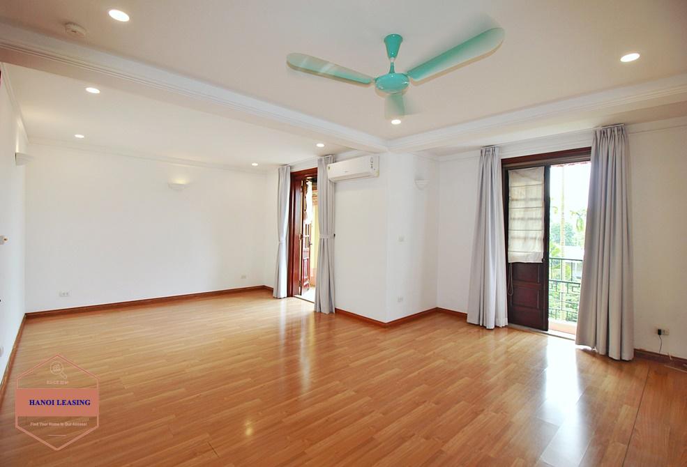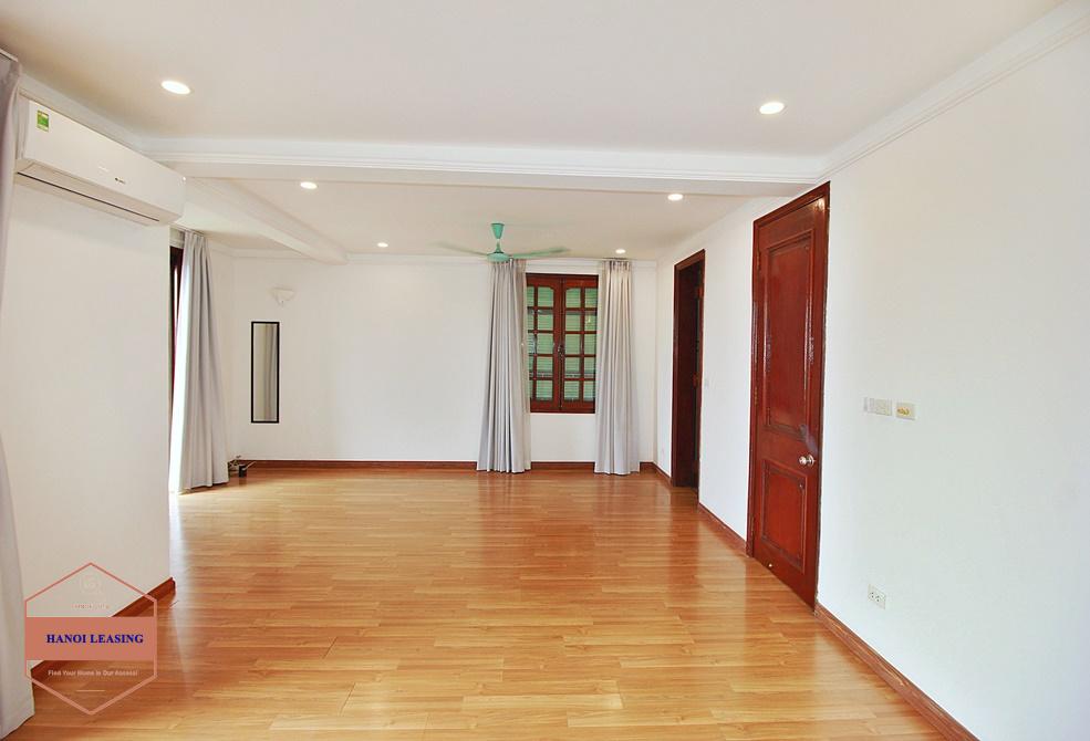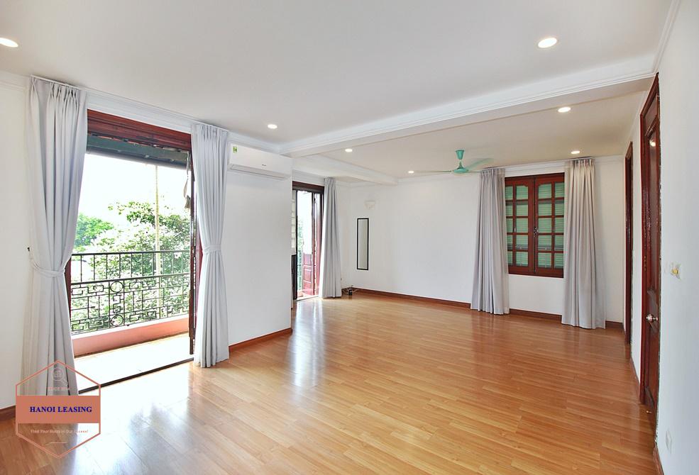 This house is in a quiet alley on Dang Thai Mai street, Tay Ho district, Hanoi, within walking distance to Westlake. The kitchen has been refurbished and connects with dining and living area. There are 4 bedrooms and 3 bathrooms on 2 floors upstair, in which, the master bedroom on the second floor has ensuite bathroom with jacuzy. All bedrooms are big have wooden floor. On the top floor, there are 2 rooftop rooms, washing machine and drying area and a small terrace looking over the neighbour area. For more information, please call us.