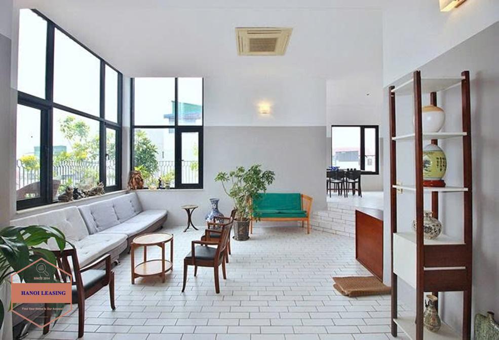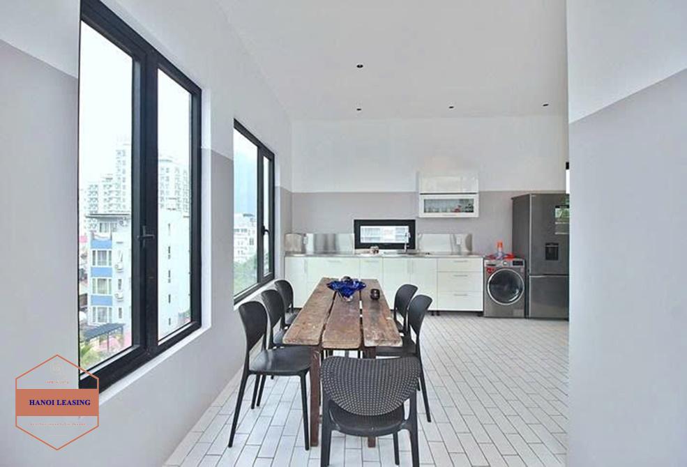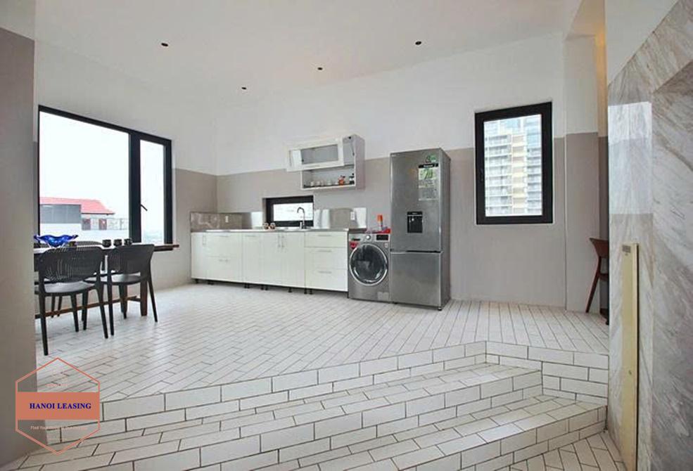 This is duplex apartment for rent in alley 31 Xuan dieu st, Tay Ho. Its has 2 floor with 3 bedrooms, 3 bathrooms, large living combine with kitchen area and nice balcony where you can relax after work!