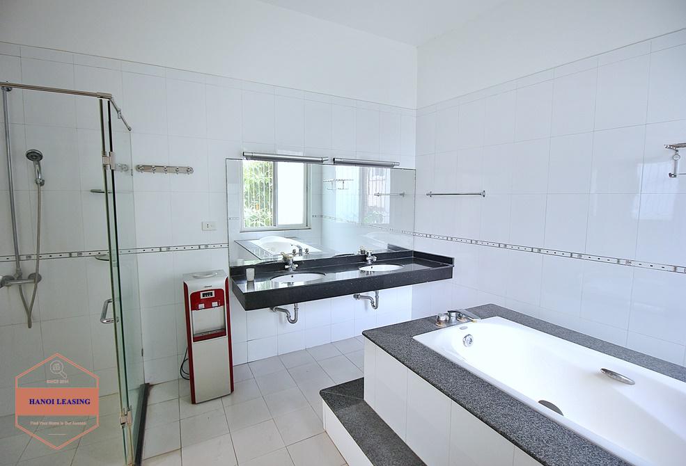 This large and modern designed house locates in a quiet residental area near Westlake side. Property area is 180sqm, with a 3 storey house and a 50sqm front courtyard. There are rooms for 5 beds. A lot of glass windows are utilized to allow natural light in all rooms. The third and fourth floors have balconies.