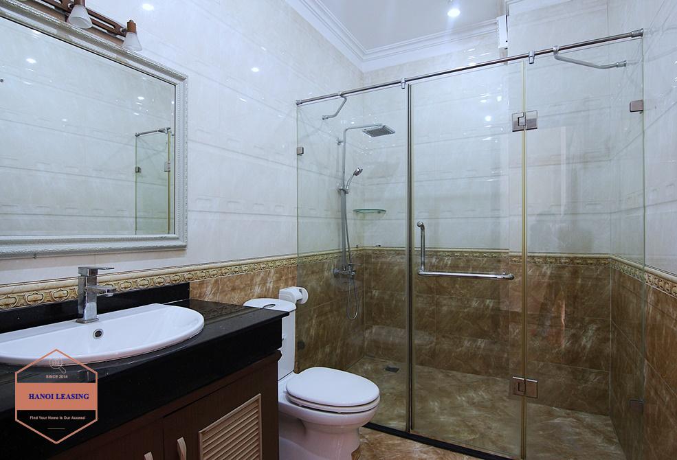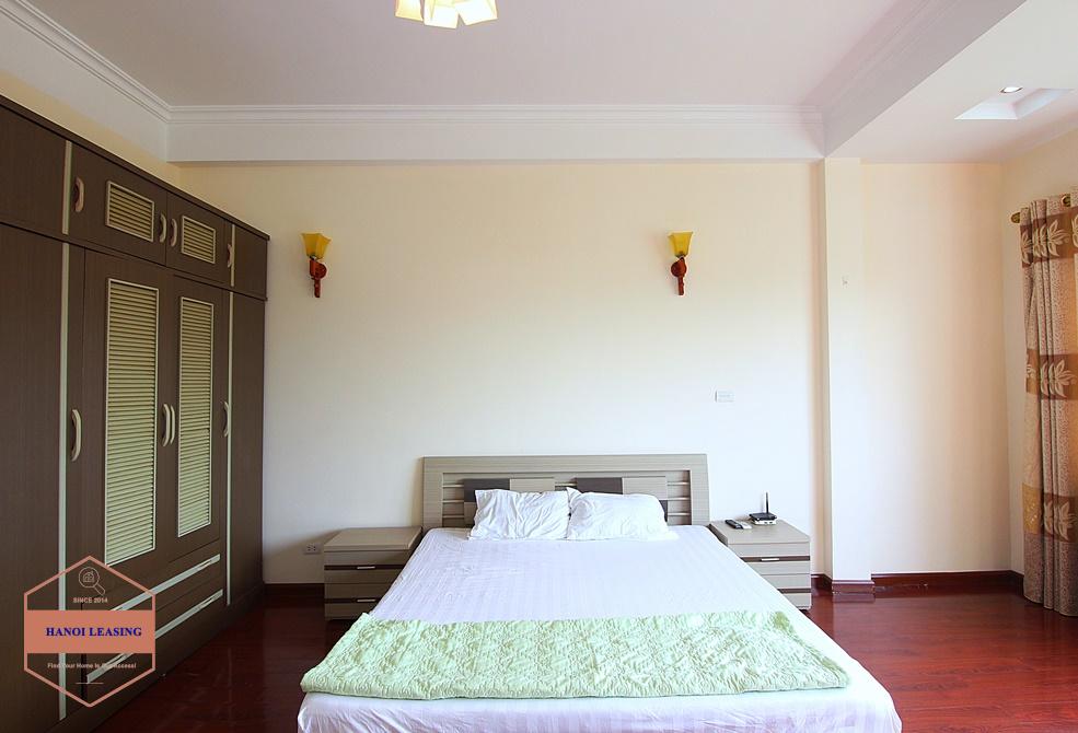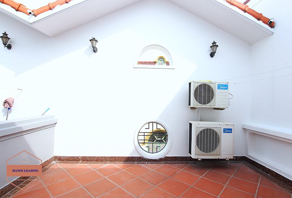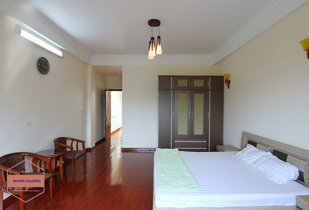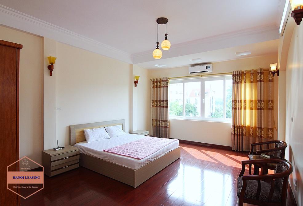 A beautiful and large house for rent in Tay Ho, Hanoi. There are 4 stories, including 4 bedrooms, 4 baths, kitchen and large greeting room. The first floor has kitchen room and large area for motorbike parking. The second floor has one bedroom, one bath and large greeting room. The third floor consists of two bedrooms and two bathrooms. The fourth floor includes one bedroom, one bath and area for laundry.