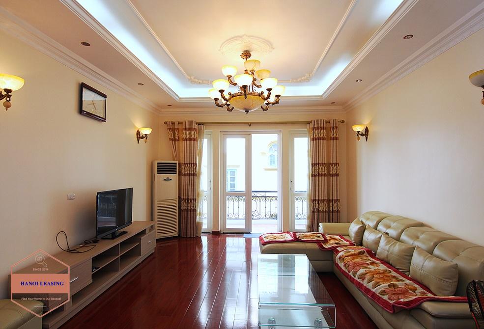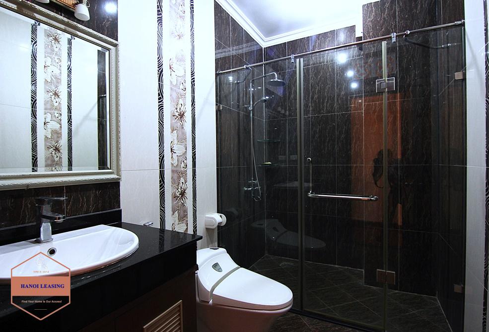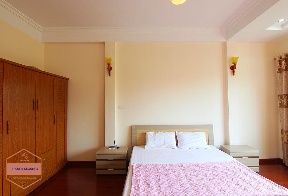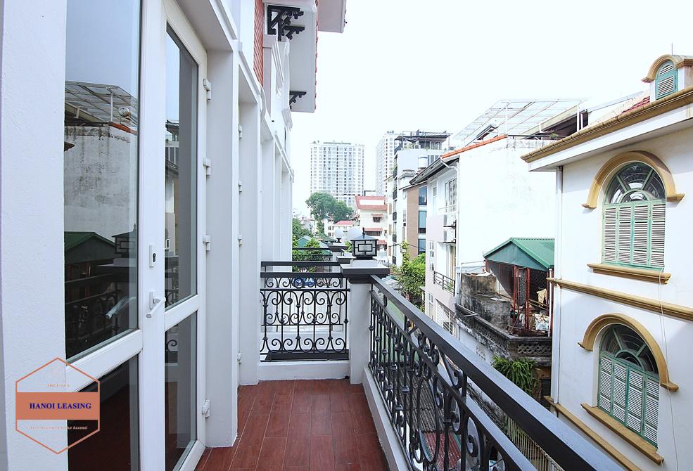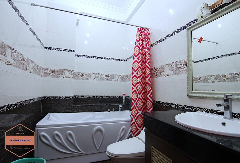 A beautiful and large house for rent in Tay Ho, Hanoi. There are 4 stories, including 4 bedrooms, 4 baths, kitchen and large greeting room. The first floor has kitchen room and large area for motorbike parking. The second floor has one bedroom, one bath and large greeting room. The third floor consists of two bedrooms and two bathrooms. The fourth floor includes one bedroom, one bath and area for laundry.