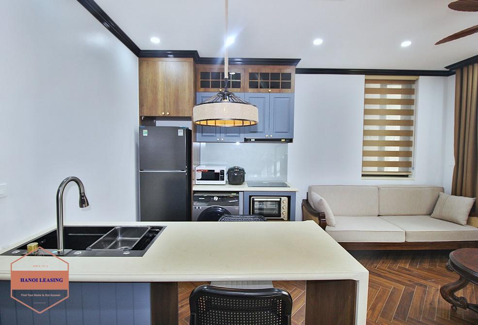 A brand new one bedroom apartment in Quang Khanh, Tay Ho. It is fully furnished with good quality furnitures. It is located in nice area, walking distance to the lake.