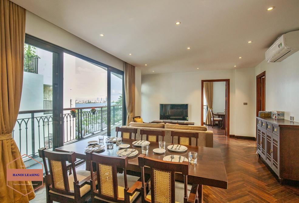 A bright 3 bedrooms apartment with lake view in Tay ho, Hanoi. The total living space is 140sqm, brightly living room with big balcony, 3 bedrooms and 2 bathrooms. It is located next to lake, walking distance to restaurants, cafes, shops...