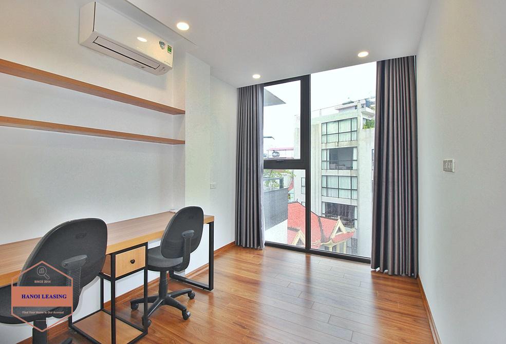 Nice one bedroom for rent in Dang Thai Mai st, Tay Ho the total living space 90sqm with 1 bedroom and 1 bathroom and 1 room working, the bulding have full service: free wifi, tap water, cleaning, only pay electricity. Near many shop, cafe, restaurants, etc. Above the apartment is a large terrace with lake view where you can grill BBQ and relax with coffee. So call us now for more information.
