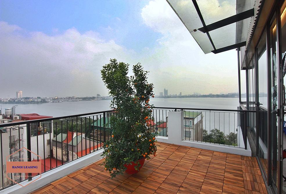 A three-bedroom duplex with lake view on the top floor on Dang Thai Mai street