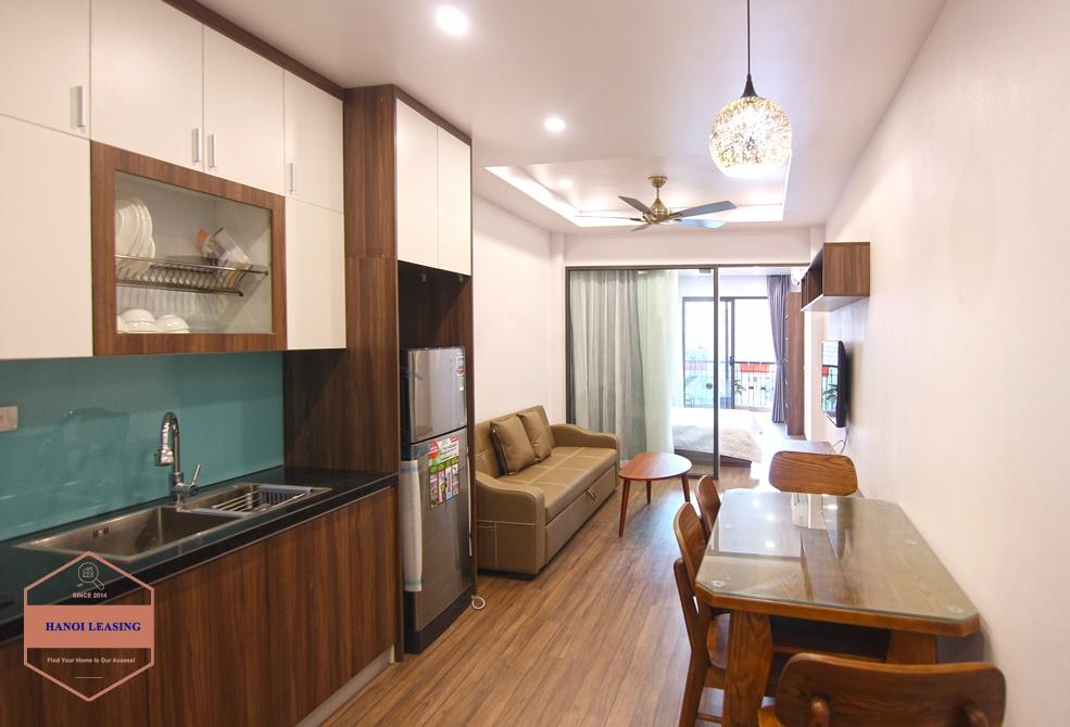One bedroom apartment for rent in Tay Ho district, Hanoi. The apartment located on the 4th floor of the building. The size of this one had 60sqm including livign room, 1 bedroom, 1 bathroom and small balcony to nice view. It located on the convenient area to close to Westlake and go every where you want.
