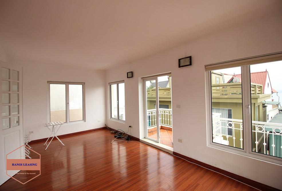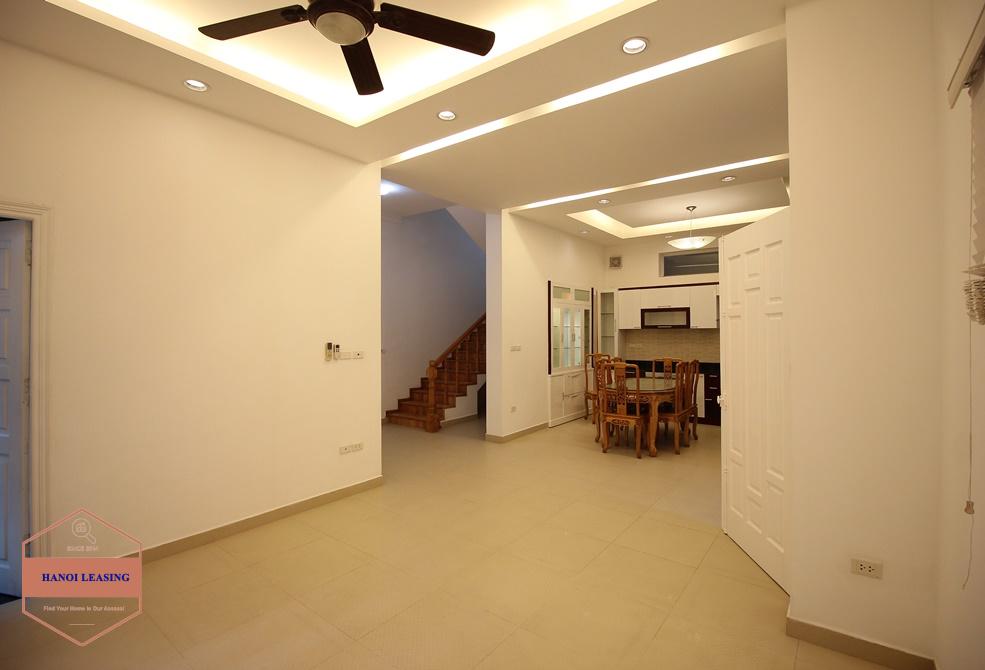 Cosy house for rent in Dang Thai Mai st, Tay Ho district. This is a good house with natural light and very quiet, it's has small yard for motorbike parking. The house has a large living room combine opened kitchen and dining room area, has 4 bedrooms, 3 bathrooms with standing shower cabinet and bathub on the second and third floor, nice balcony and room of washing with dry. The house is very near the lake and many restaurants, shops, coffees...