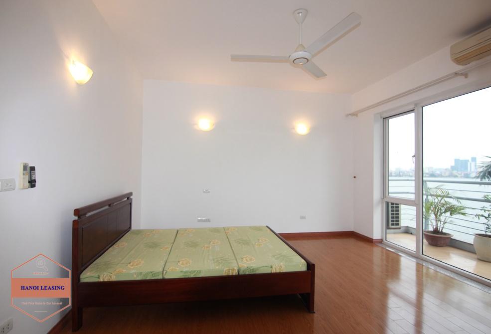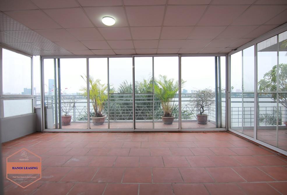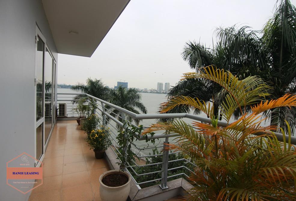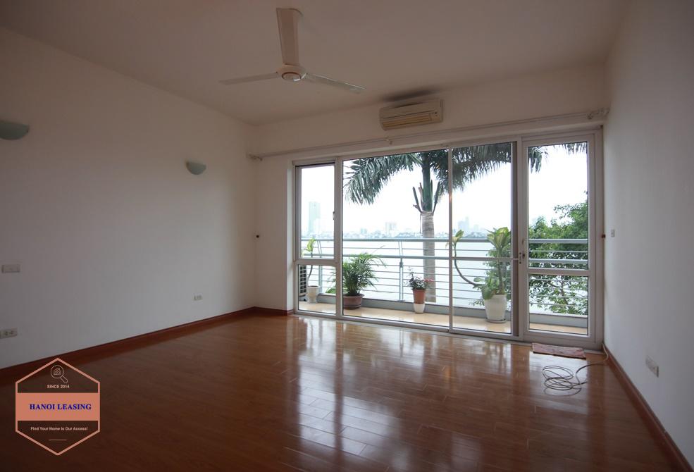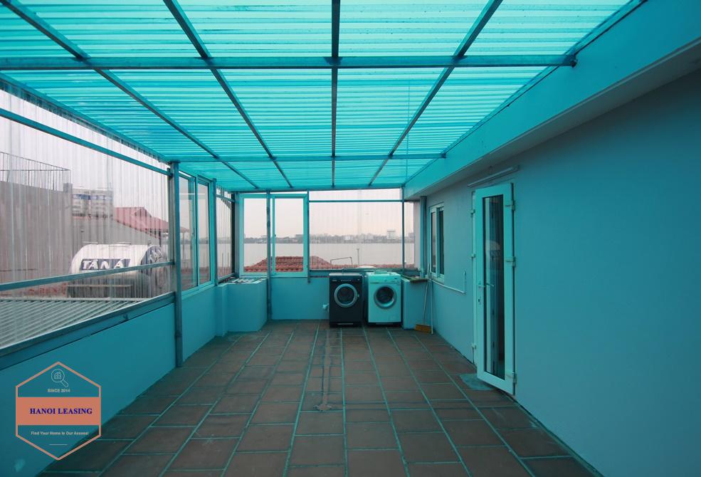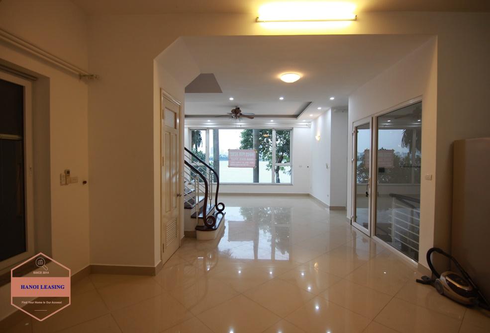 The house is located right on the lakeside, on Quang An, Tay Ho, Hanoi, facing Westlake & offering stunning view. It has a car garage, open living room and kitchen, 4 bedrooms and 4 bathrooms. On the roof is a terrace with a canopy. Total living area is about 500sqm, more than enough for a family. The location is just off the busiest part of Quang An, but still in walking distance to restaurants, cafe, minimarts, etc, and about 10 mins walk to Syrena shopping mall on Xuan Dieu.