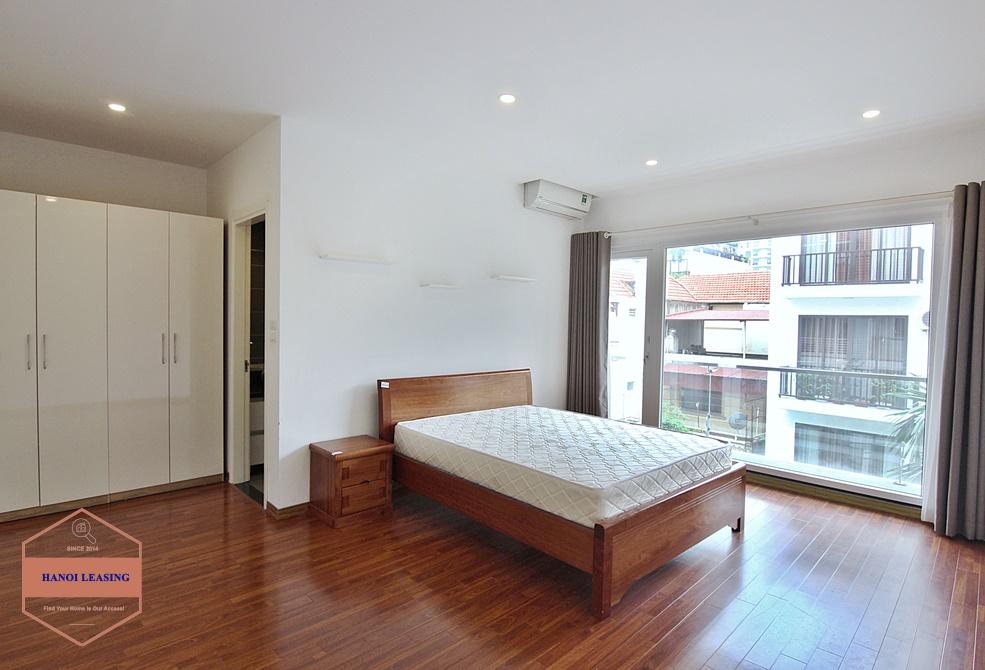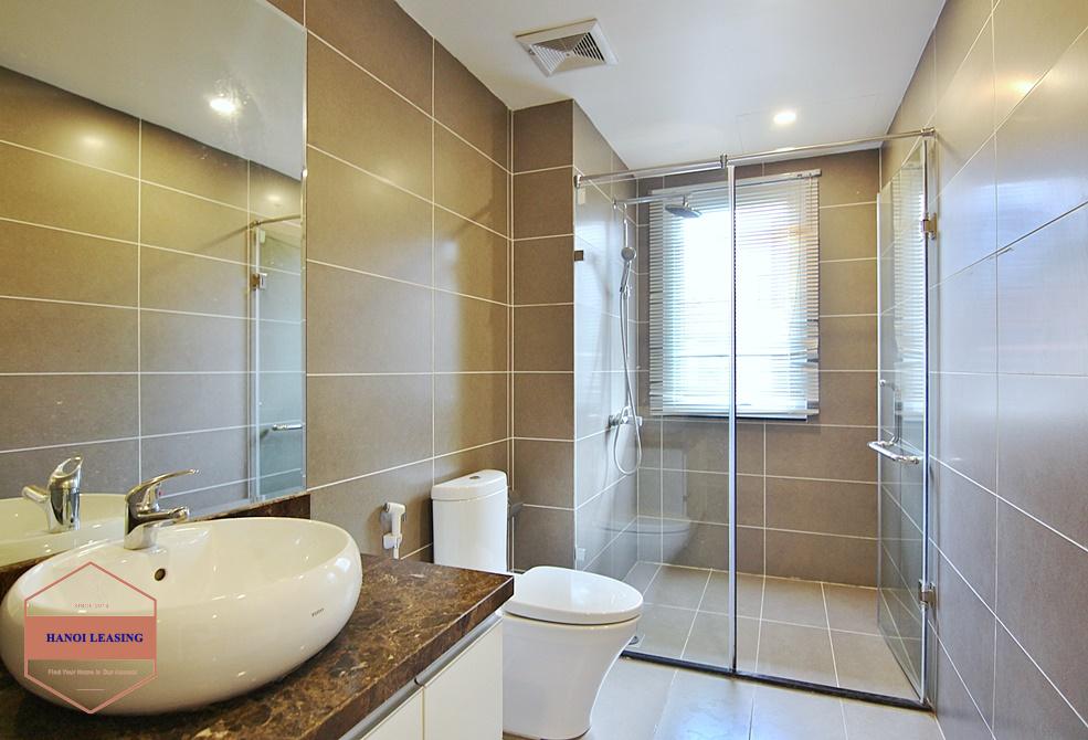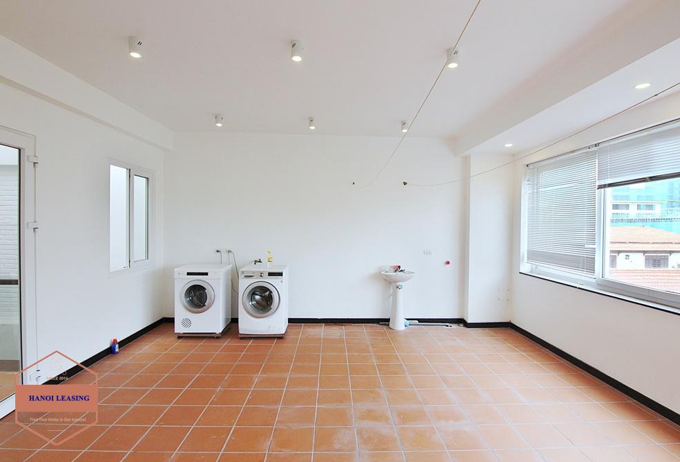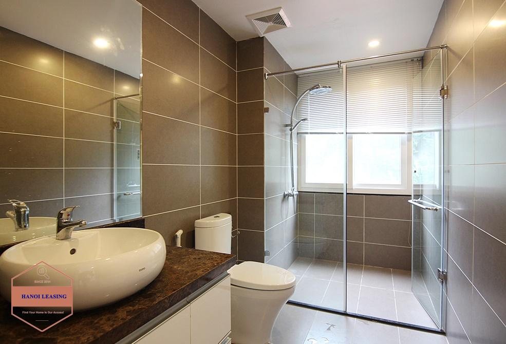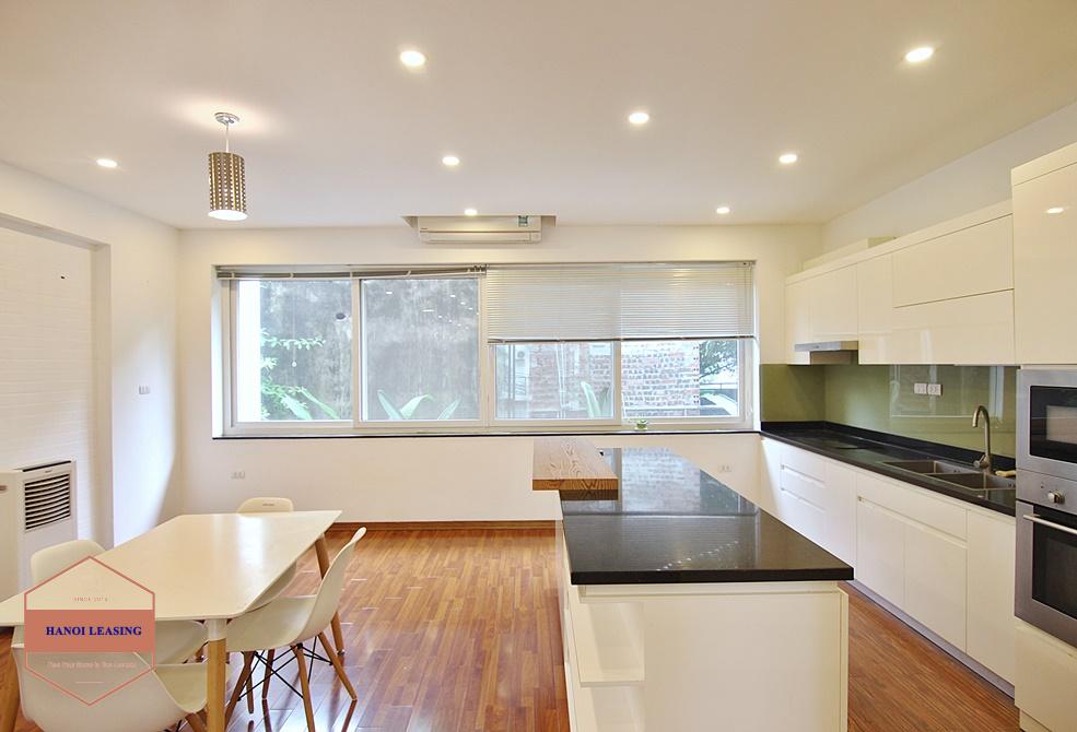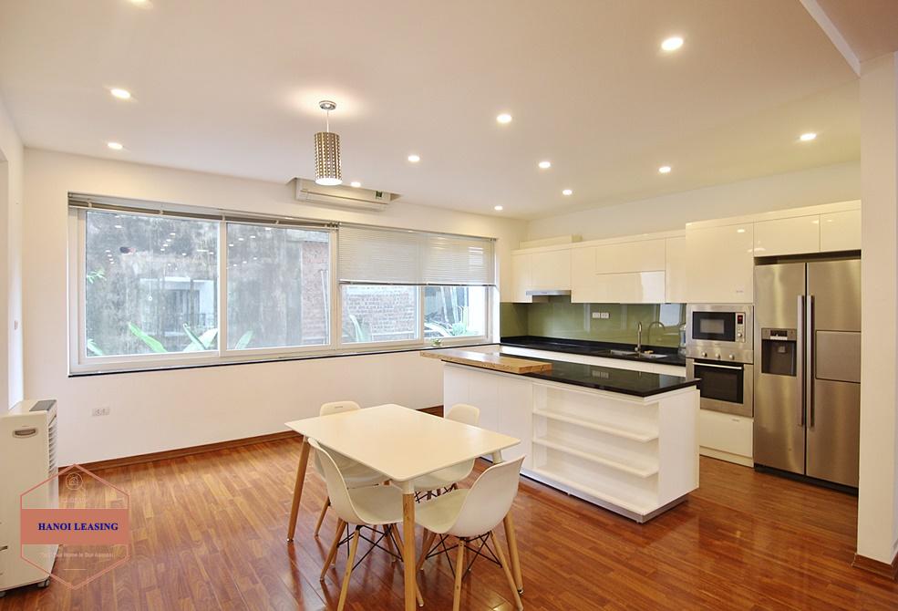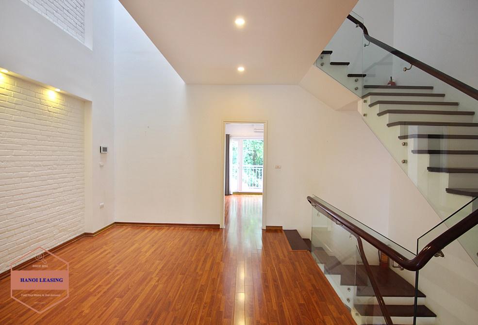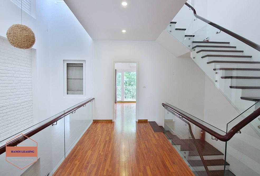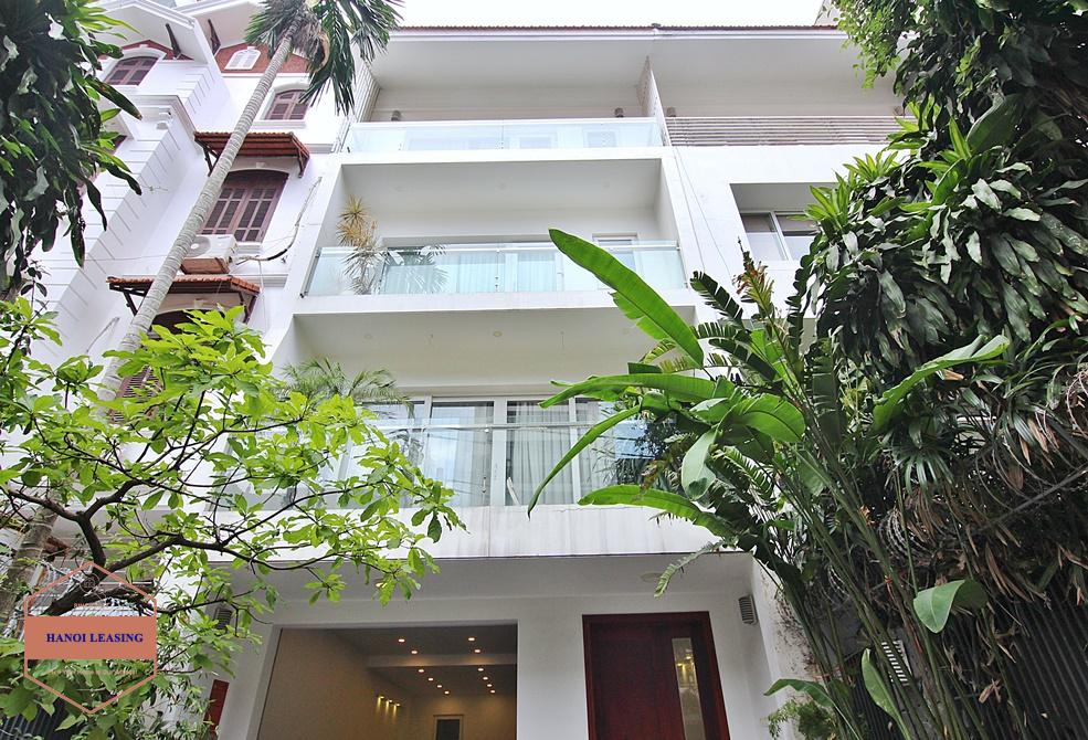 A gorgous rental house with rooms for 4 beds in Tay Ho, Hanoi. The house has a small court yard, large living room, modern and nice kitchen, 4 bedrooms and 4 bathrooms with standing shower cabins, and a large rooftop terrace. It is well designed in a modern and suitable style with glass balustrade and skylight system together with a lot of windows in every room allowing a lot of natural light and air to enter the house