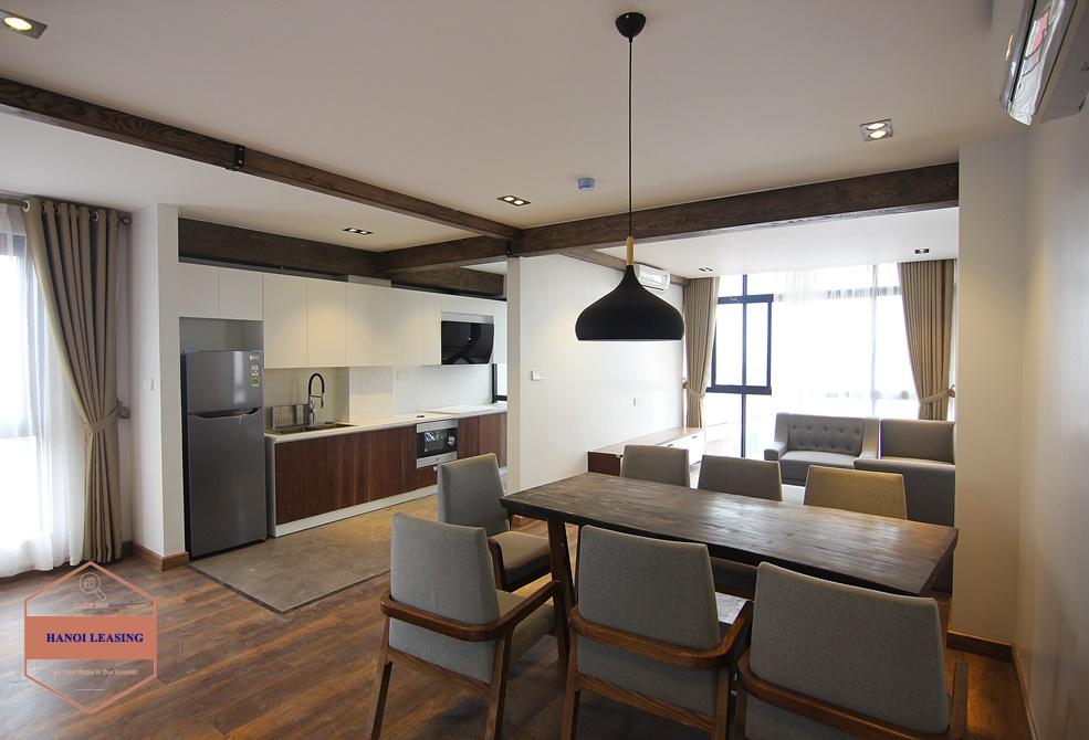 This brand new apartment building is located in an alley off Dang Thai Mai, very close to Westlake, walking distance to restaurants, minimarts, cafes, etc. This is the 6th floor unit with 2 bedrooms and 2 bathrooms, open living room and kitchen with a small balcony attached to the kitchen. Total living area is about 100sqm, with good natural light and air. It comes with cable TV, internet wifi, cleaning service, tap water.