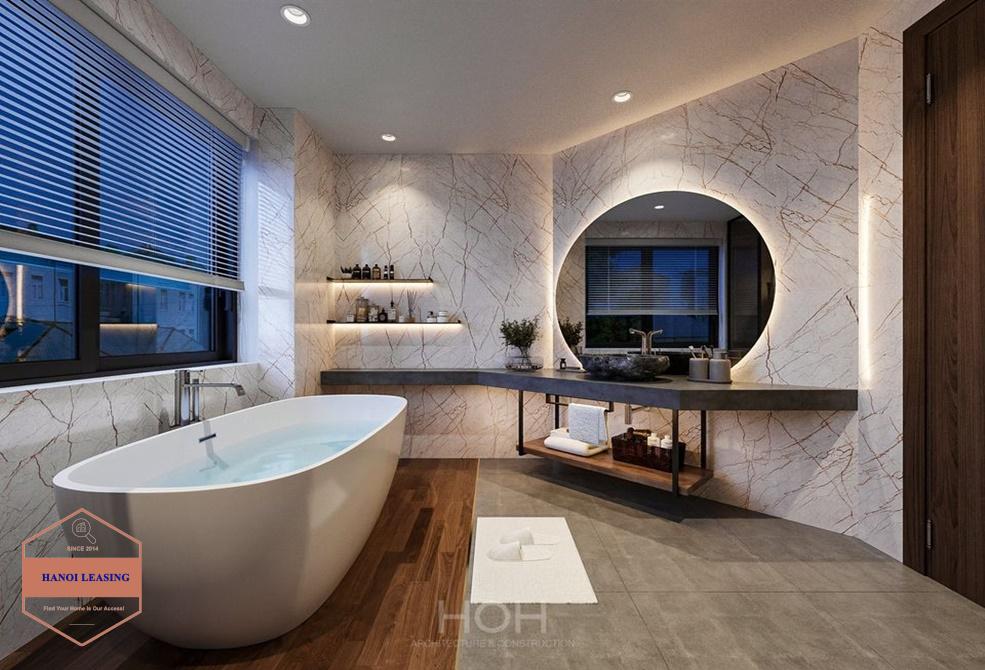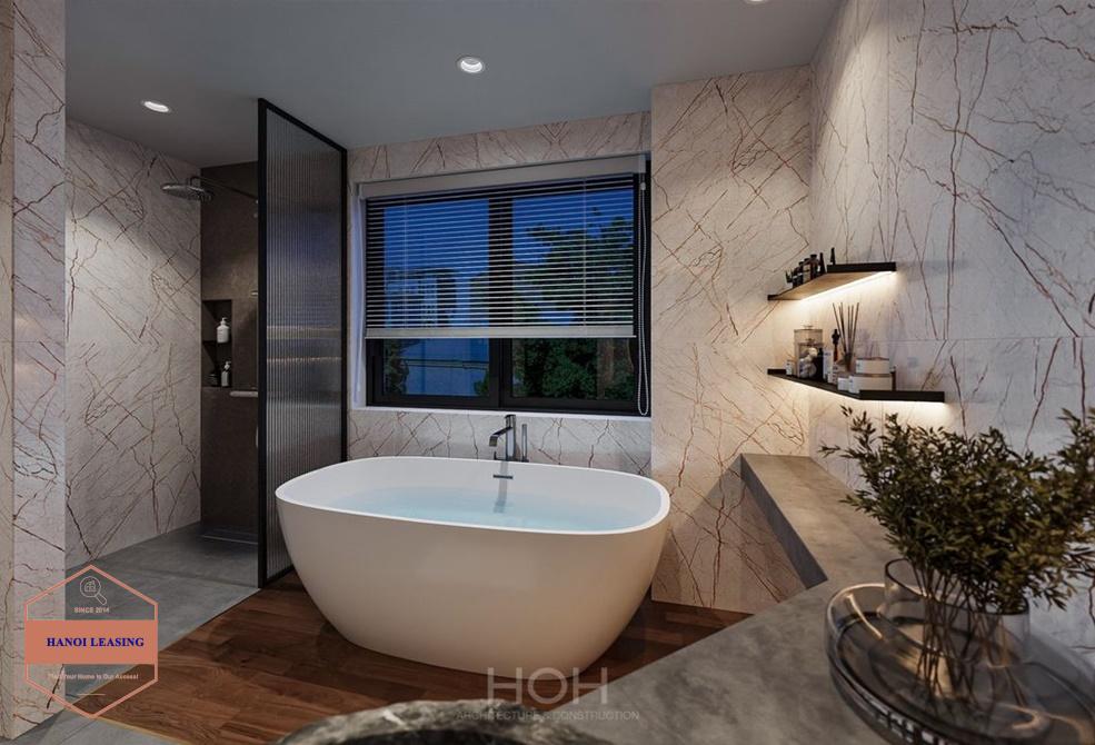 This is a nice and modern house, it is built on a land area of 150sqm with a construction area of 400sqm. With this design, the hosue has a small yard with car parking. The inside of the house is designed with modern furnitures and equipments, large living room with modern sofa and kitchen, large glass windows where you can get a lot of natural light. Especially, there are 4 bedrooms and 4 bathrooms. All furnitures are imported with high quality. Call us for a viewing! The rent is 4000$ per month and plus 10% VAT, total 4.500$