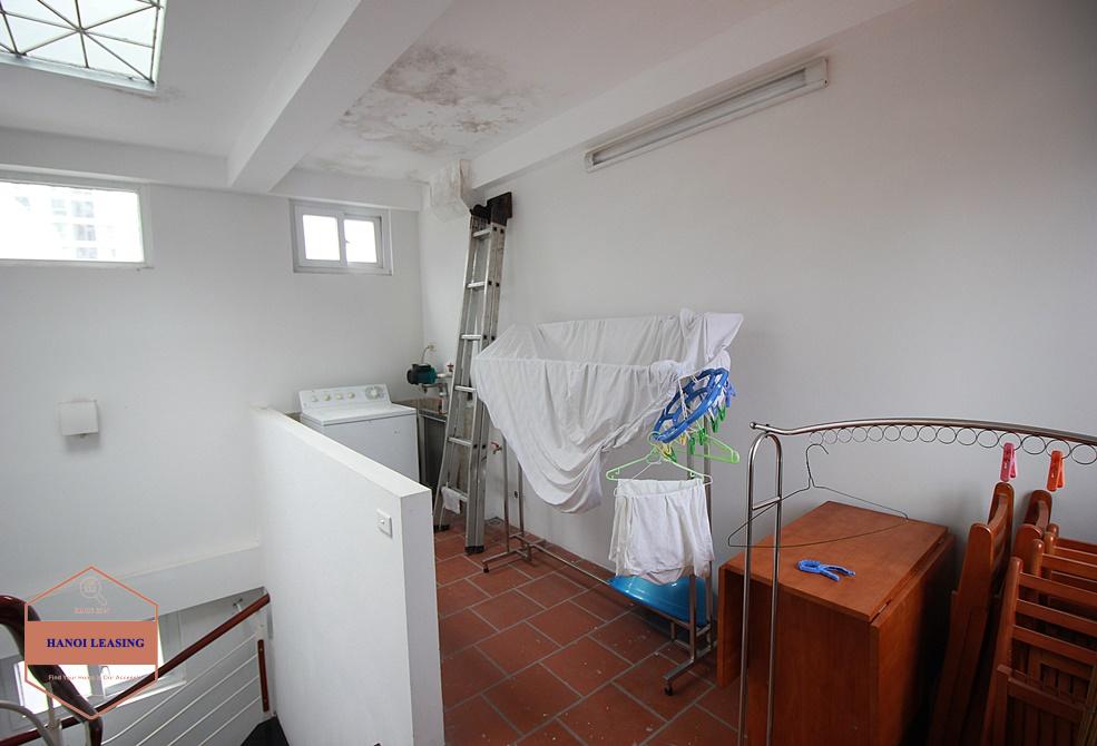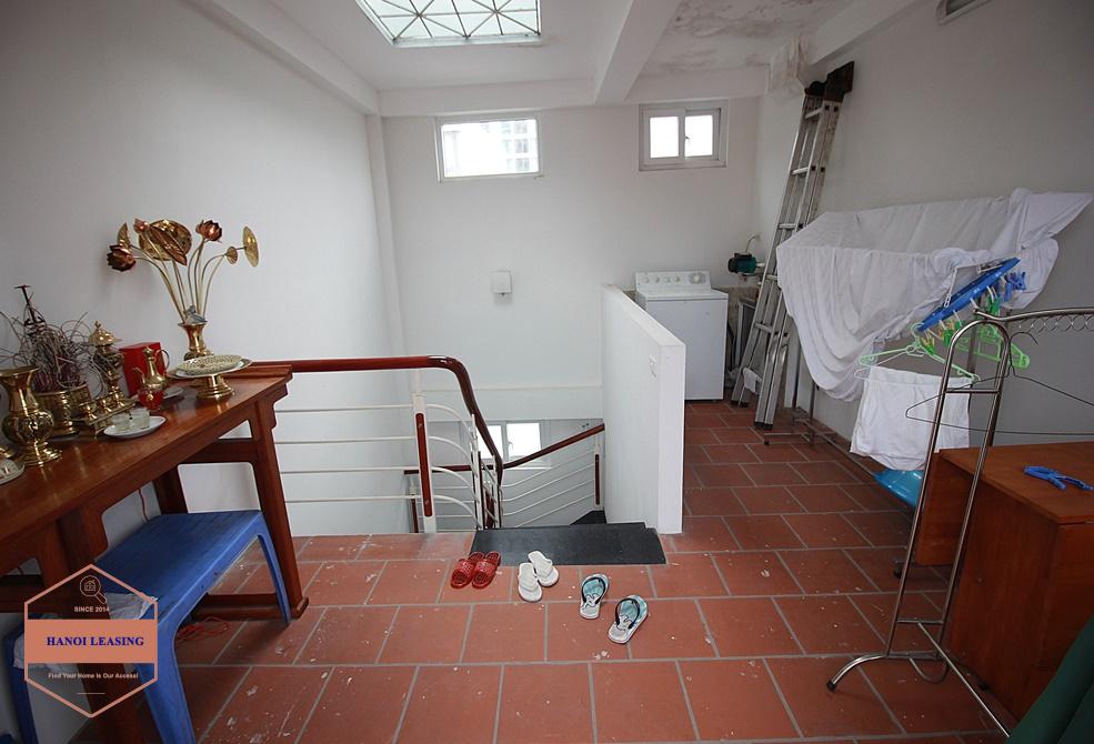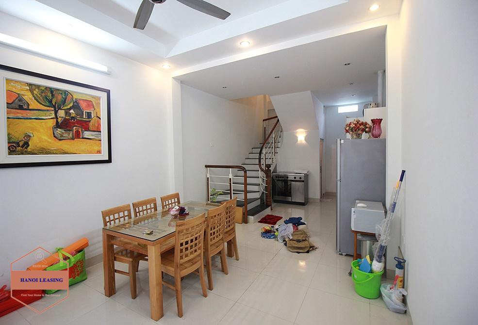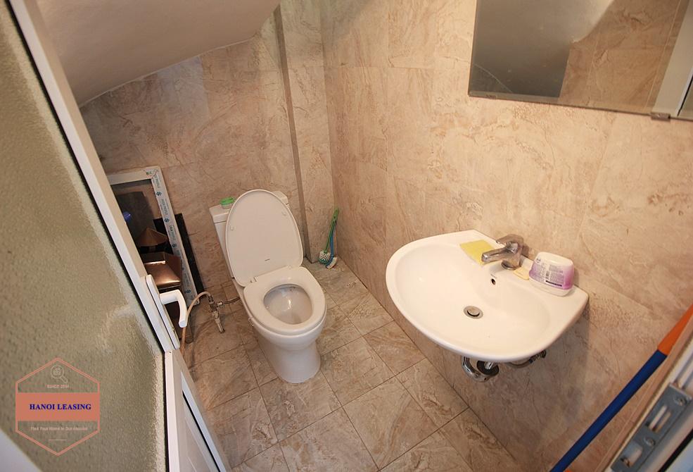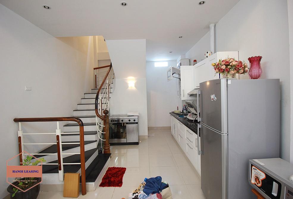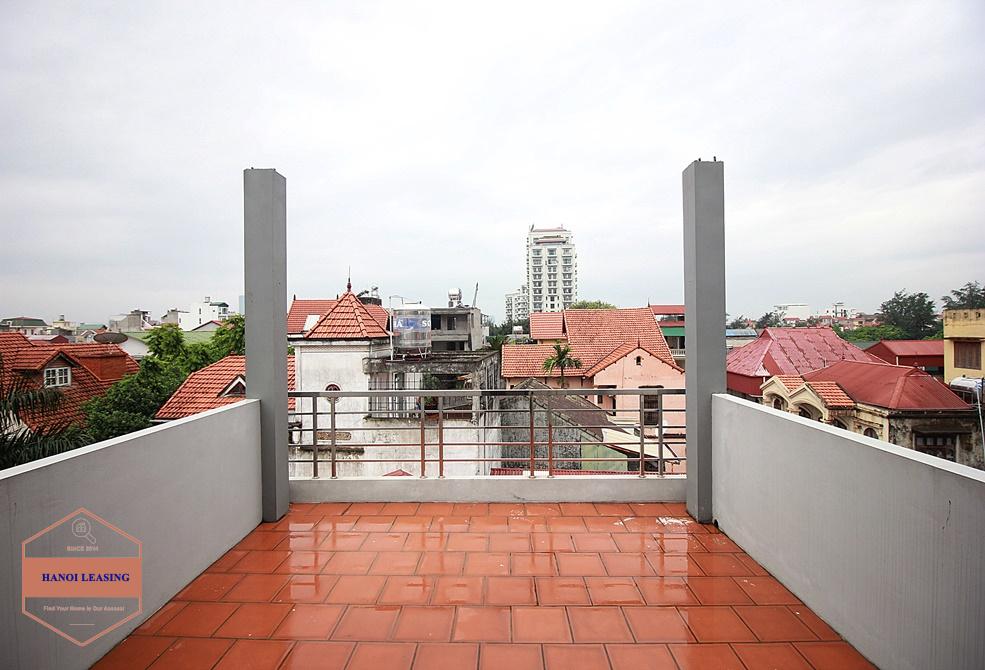 This is a small house for rent in Dang Thai Mai st, Tay Ho. The house has 5 floor with design 1st floor is parking and kitchen area, 2nd floor is living room with toilet, 3rd and 4th floor is each floor is one bedroom with bathroom, 5th floor is the rooftop!