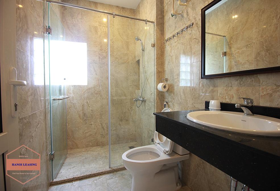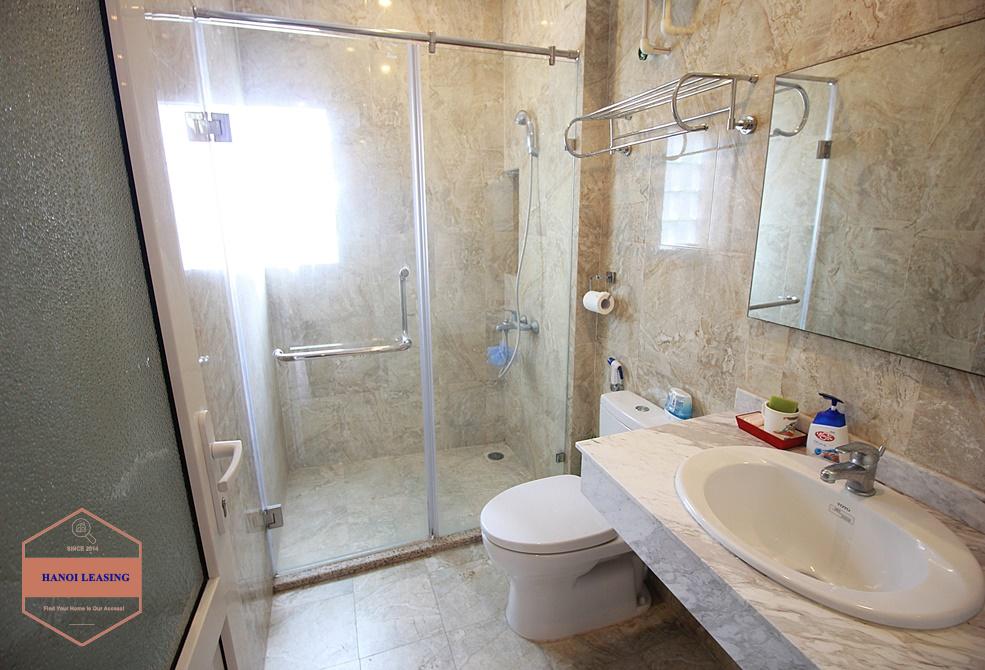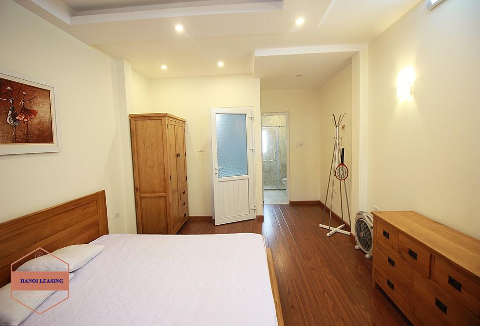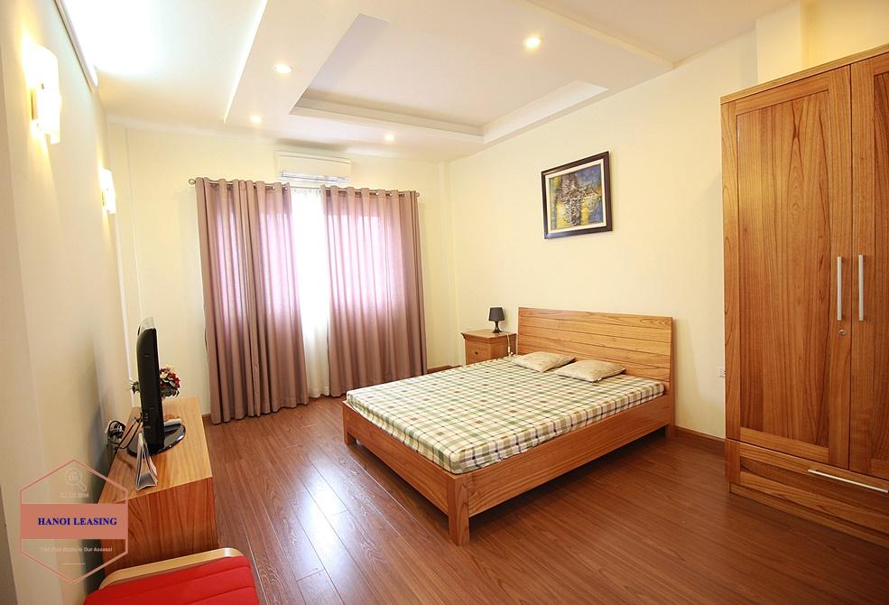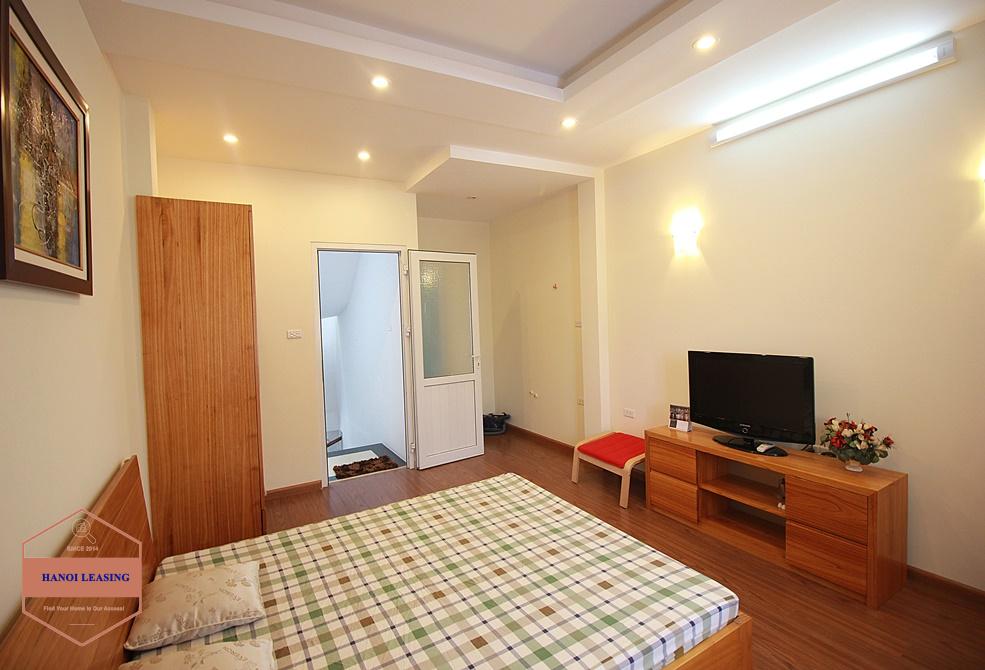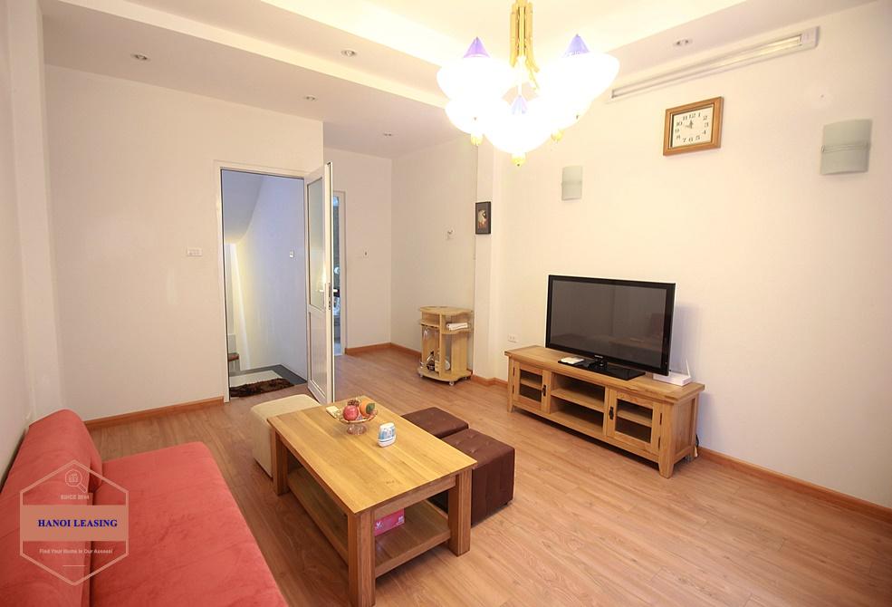 This is a small house for rent in Dang Thai Mai st, Tay Ho. The house has 5 floor with design 1st floor is parking and kitchen area, 2nd floor is living room with toilet, 3rd and 4th floor is each floor is one bedroom with bathroom, 5th floor is the rooftop!