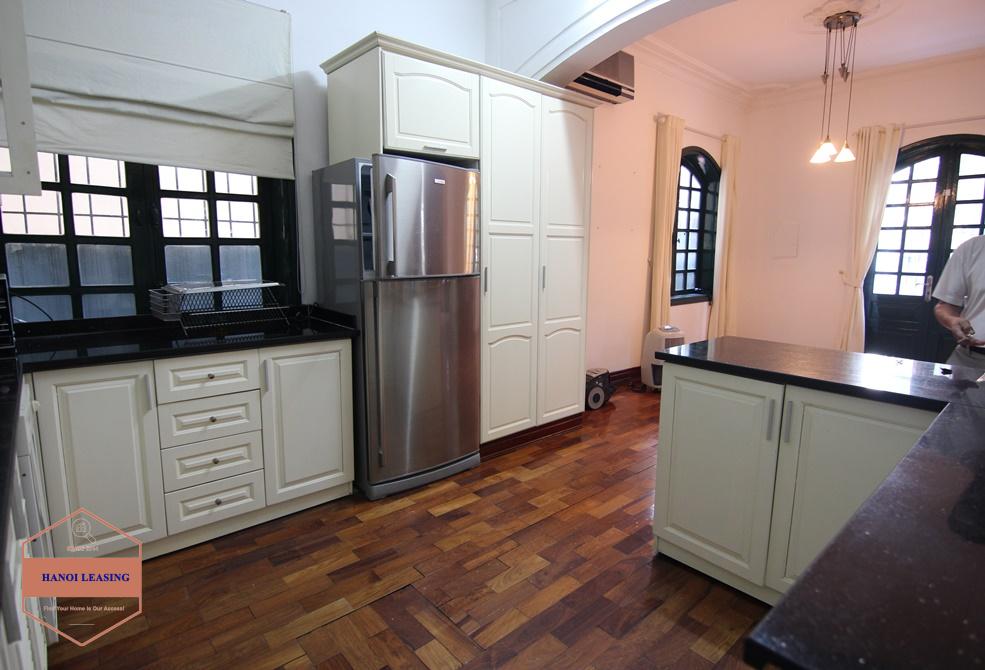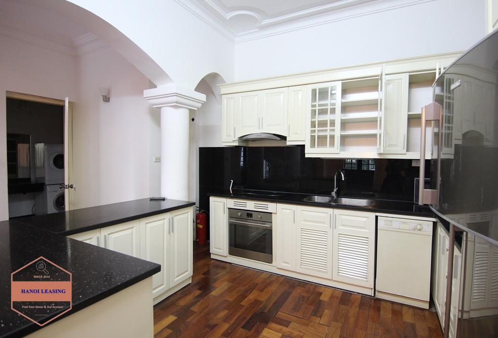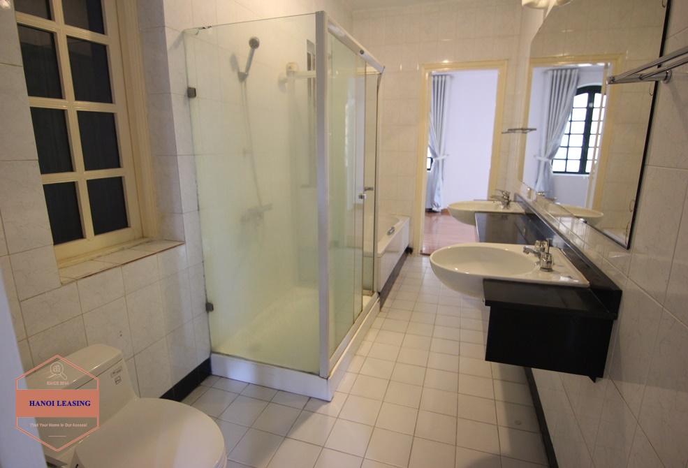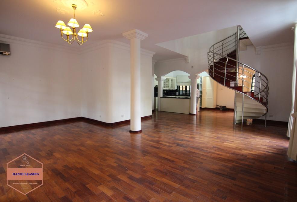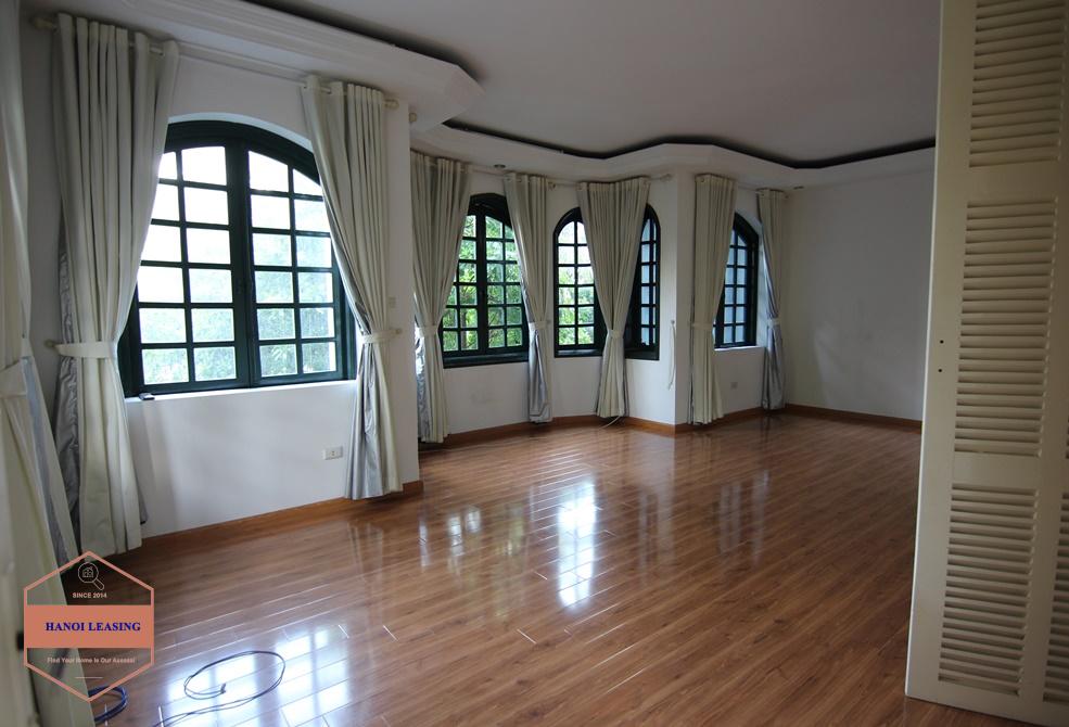 A beautiful mansion with open space and lots of natural light. The house locates in a totally quiet and tranquil area with two steps to Westlake side, close to the system little house, rising star kindergarten, with many local and Western restaurants, shops, minimarts nearby. The house has a large side yard full of green plants, a open space 100 sqm living room and kitchen. It offers four bedroom with built in wardobes and ensuite bathrooms and a large attic for storage.