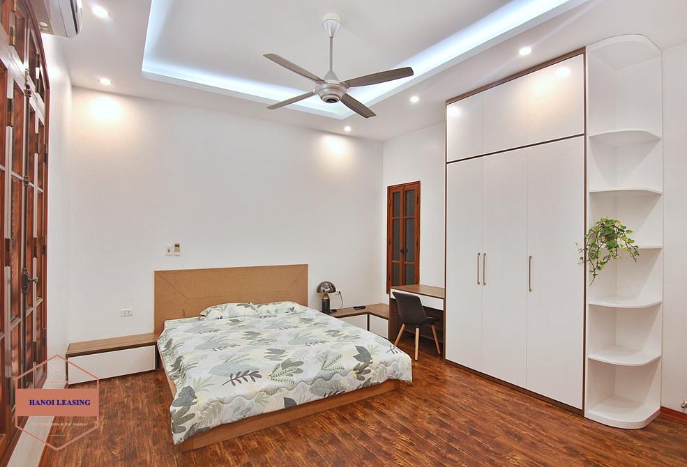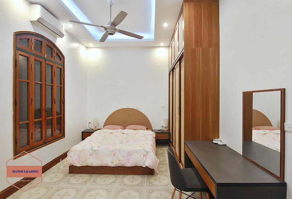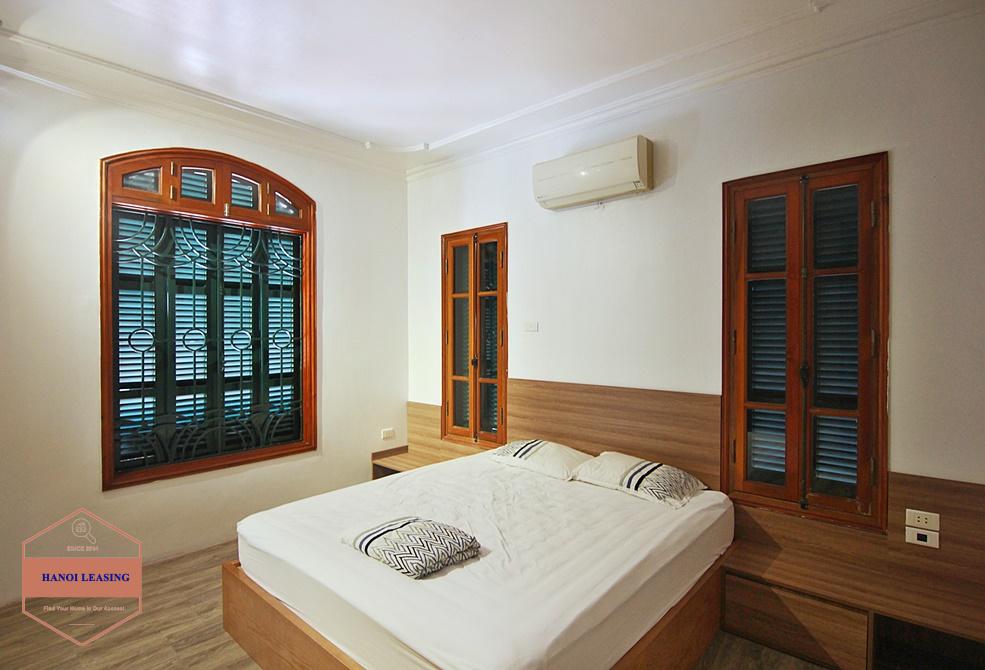 This beautiful house is nestled in an alley off Dang Thai Mai road, right in the heart of Tay Ho and just a few mins walk to Westlake. It has a large court yard and lots of balcony/ terrace, 2 master bedrooms with ensuite bathrooms, and 2 space bedrooms. The house is newly renovated, now featuring elegant tile floor of the living room and kitchen, natural wooden floor of the bedrooms, modern bathrooms, fitted kitchen and overall lots of natural light and air in every corner. The house is now fully-furnished with nice decor and interior. Suitable for a family or couple who are fond of colonial houses with a touch of modernity.