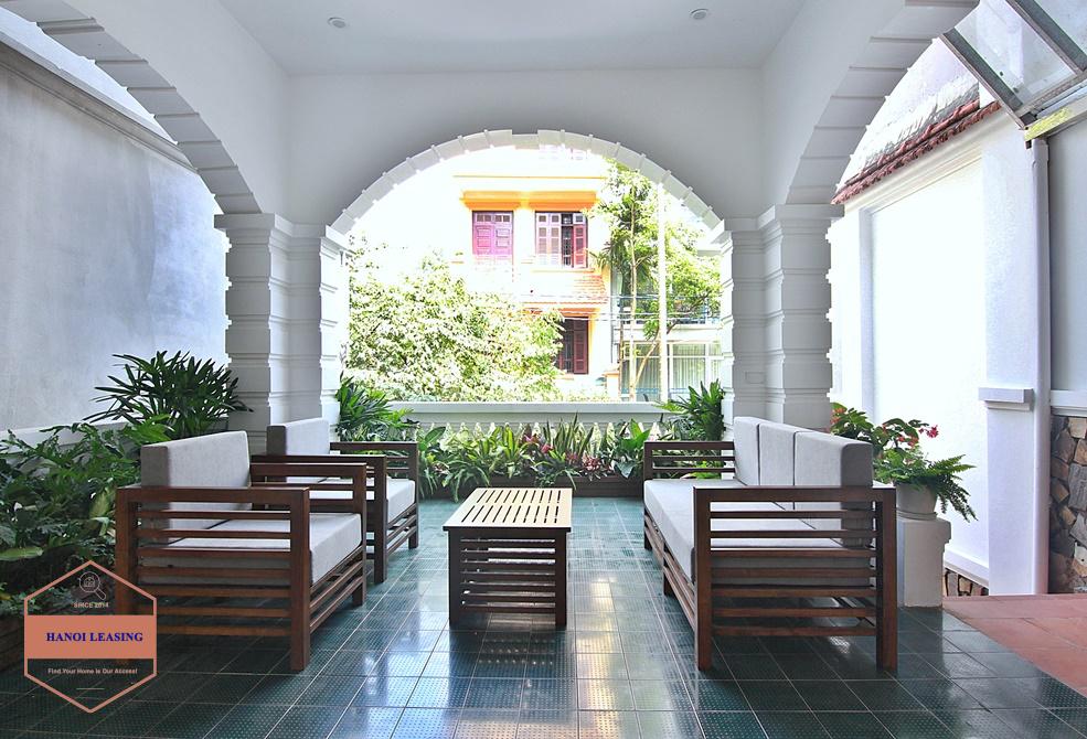 Renovated French villa for rent in Tay Ho, high ceiling, lots of outside space