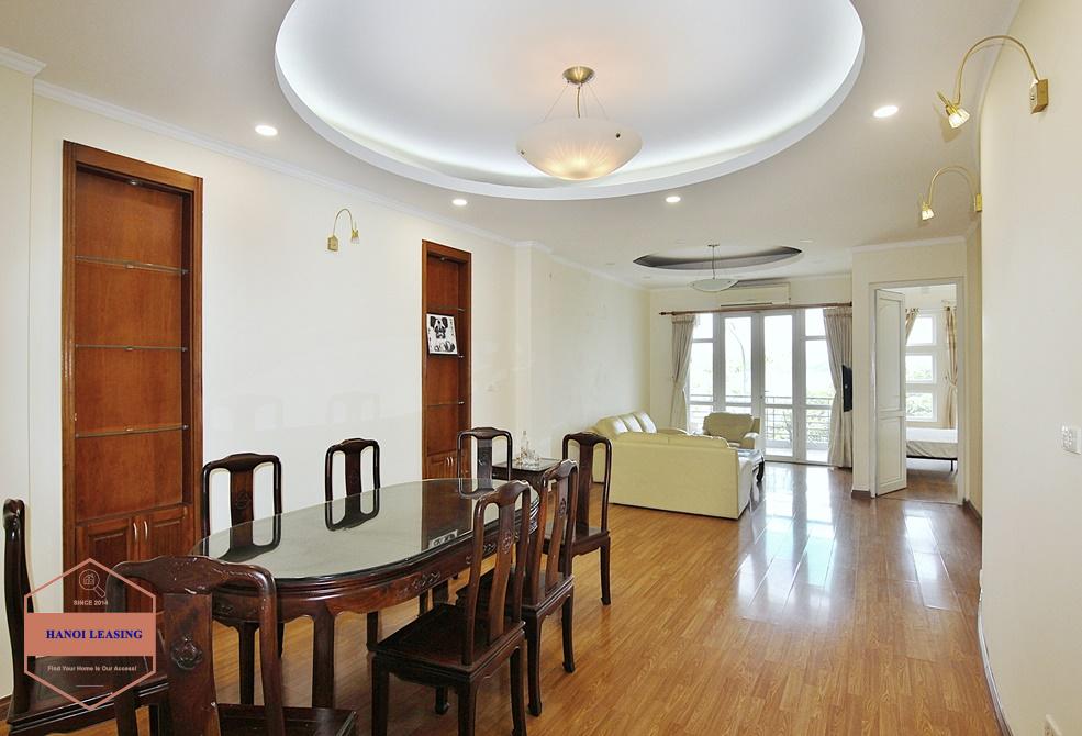 Spacious 3 bedroom apartment with lake view in Tay Ho, Hanoi. The total living space is 130sqm, with livign room, nice balcony with lake view. It is located in quiet area, right next to the lake, park...