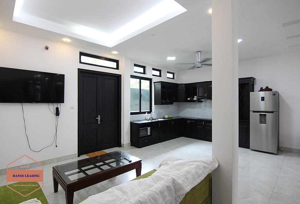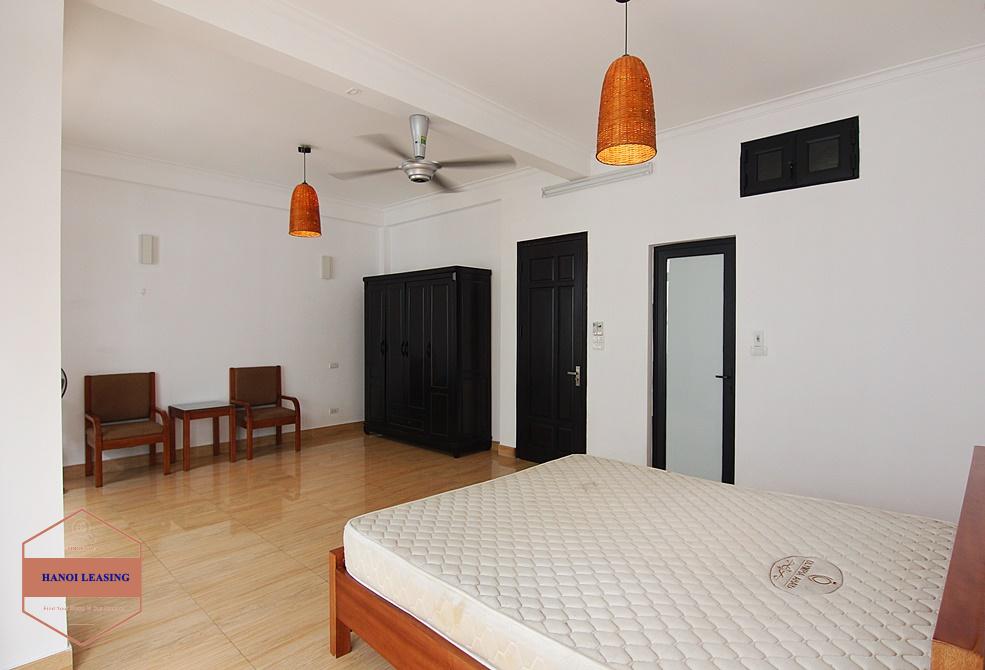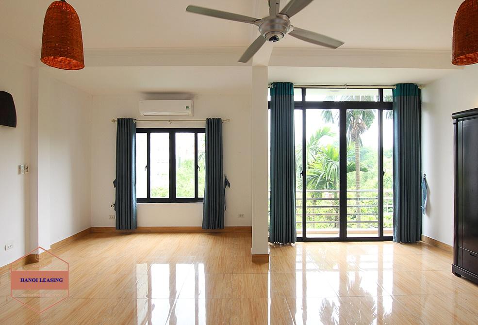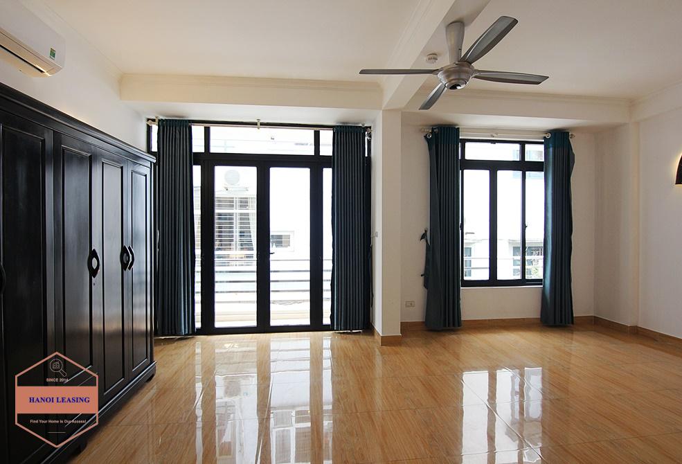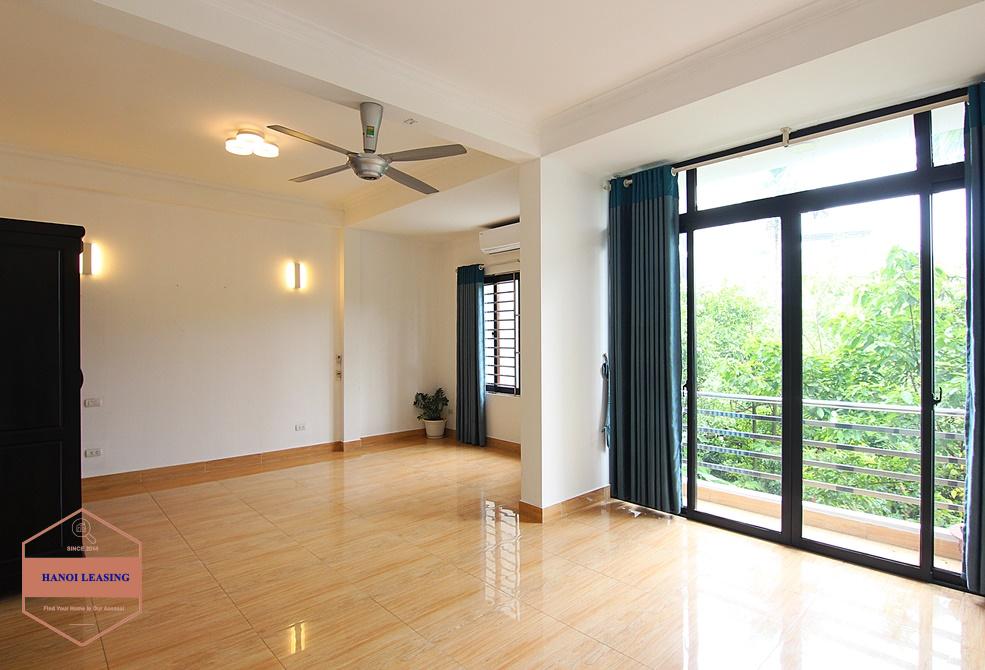 A new and large house for rent on Dang Thai Mai, Tay Ho with property area 360sqm, there are 4 floors in this house. The 1st floor is parking, living room and kitchen. The 2nd + 3rd floors are 4 bedrooms and 4 bathrooms. The 4th floor are rooftop. Ideal location which is very quiet and safe, but only a walking distance to Syrena shopping mall. The house is fully furnished with essential equipments and high quality wooden furniture.