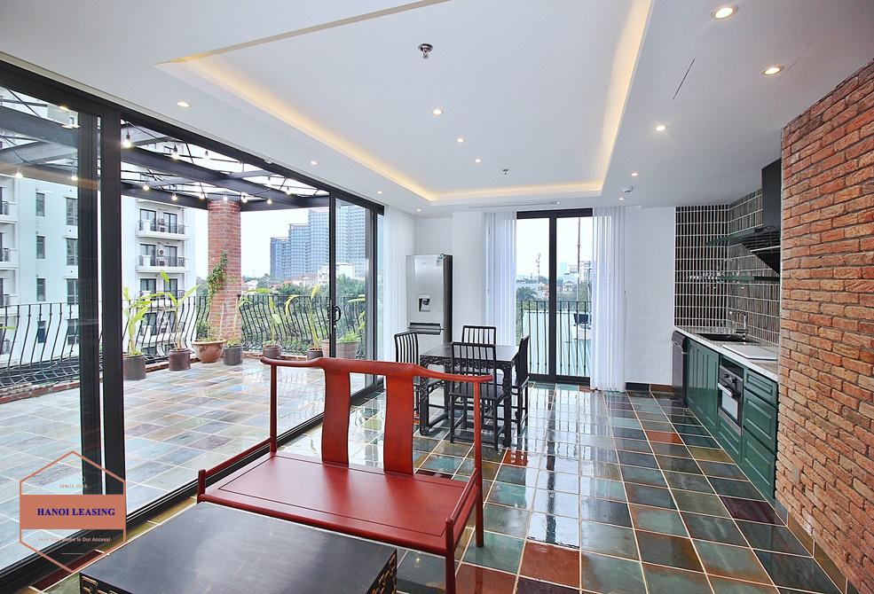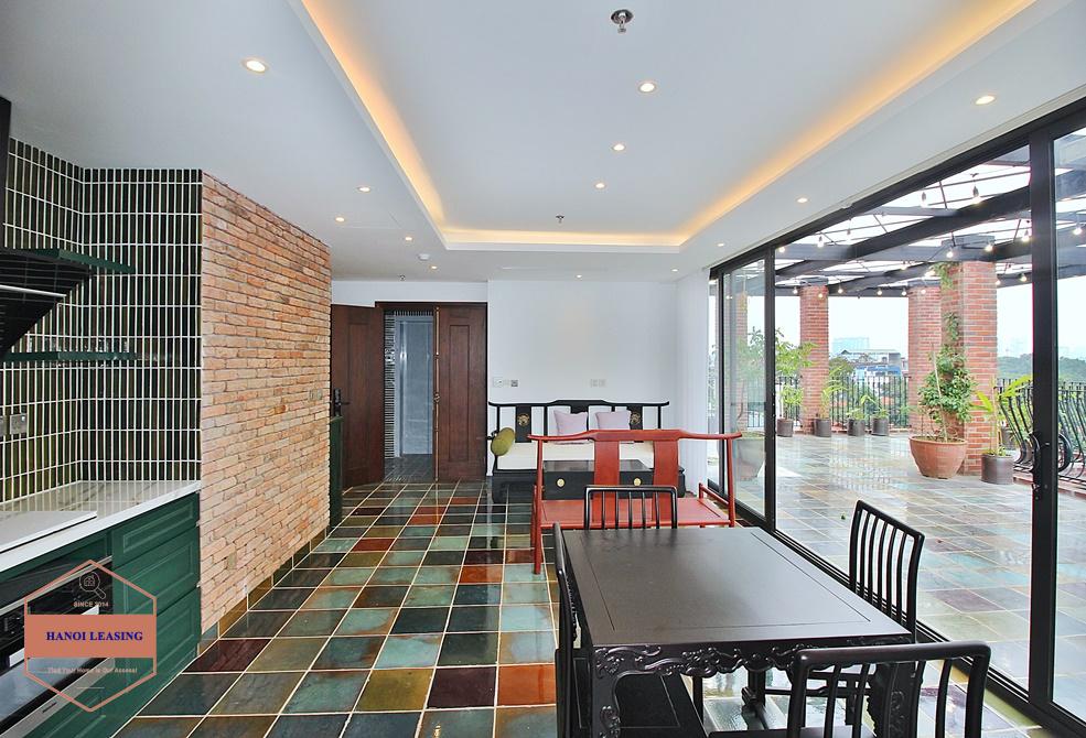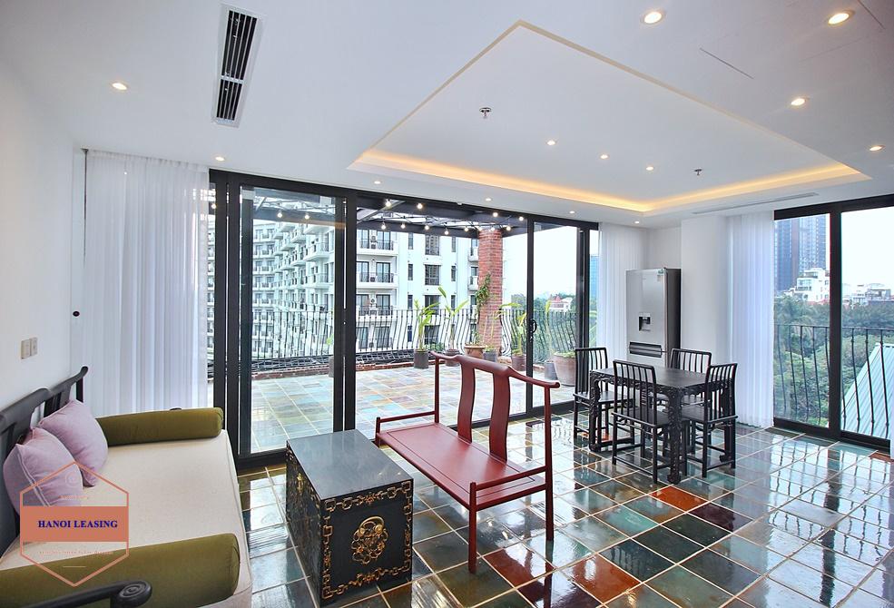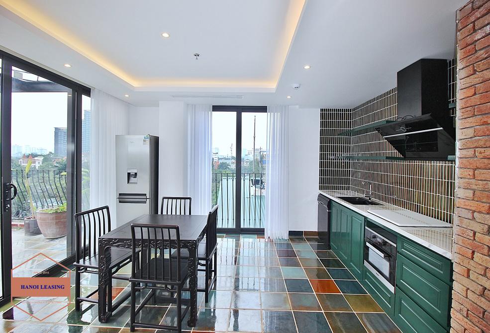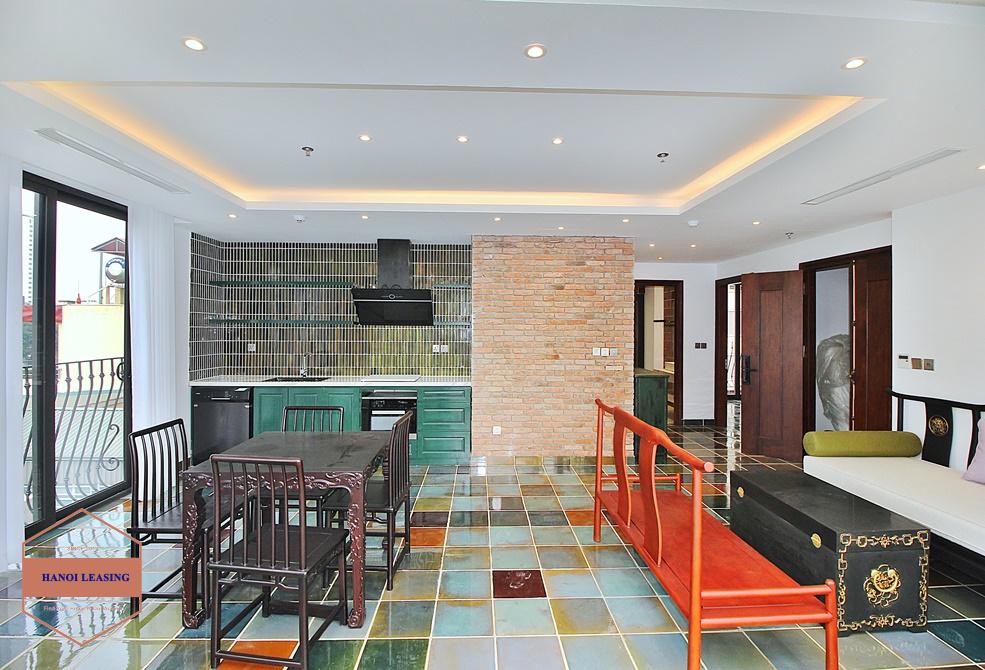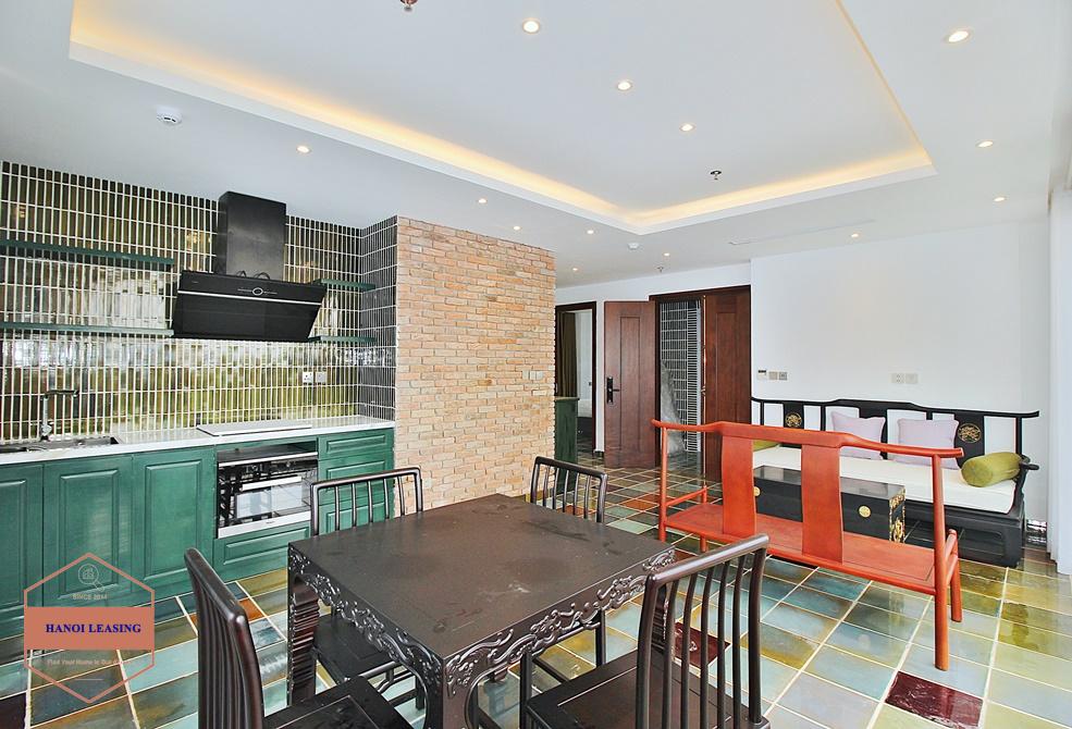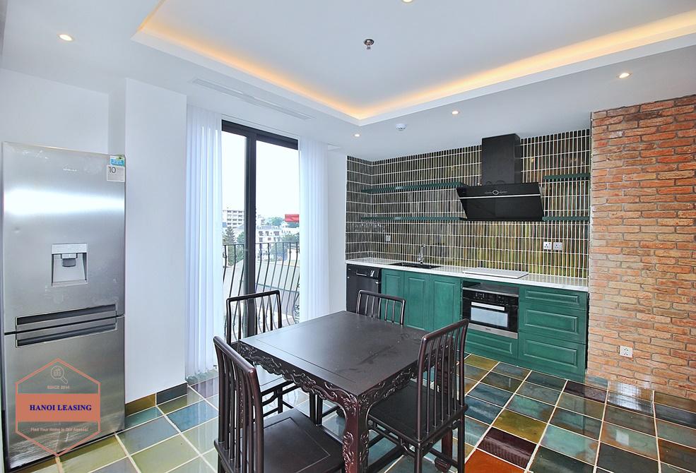 Unique 2 bedrooms apartment with huge balcony in Dang Thai Mai, Tay Ho. It is fully furnished with unique and good quality furnitures. Brightly living room and kitchen with huge balcony and nice view.